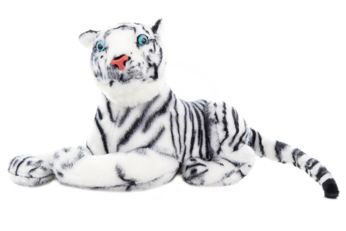 Armas ja pehme kaaslane lastele alates sünnist – plüüšist valge tiiger pikkusega 57 cm. Õrn materjal, väikestele ohutu, ideaalne kaisutamiseks ja ka lastetoa dekoratsiooniks.