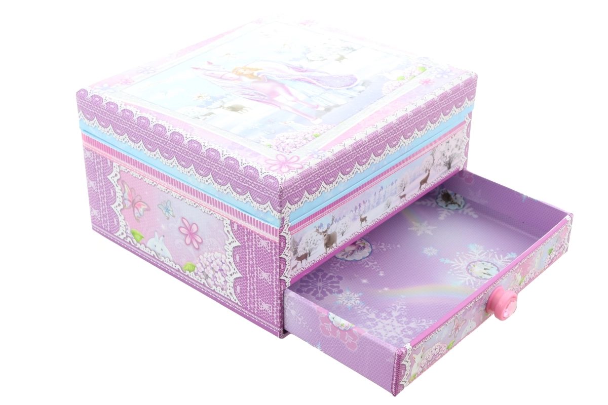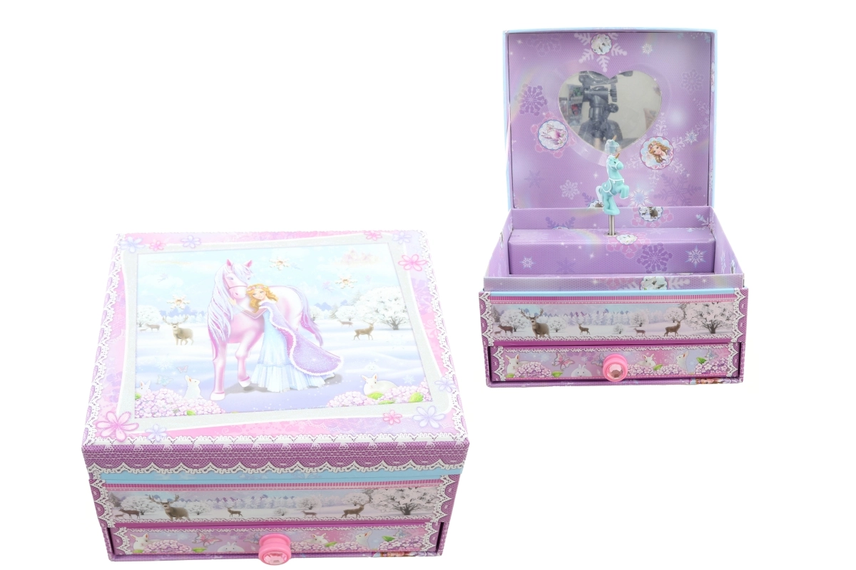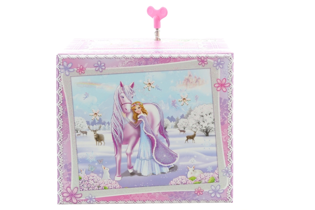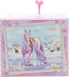 See elegantne muusikaline ehtelaegas talveprintsessi ja ükssarviku motiiviga ühendab dekoratiivse väljanägemise ja praktilise jaotuse. Pärast mehaanilise kellamehhanismi kerimist ja kaane avamist hakkab kuju pöörlema ning kõlab meloodia, mis loob muinasjutulise meeleolu.