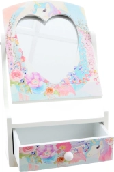 Kallutatav südamekujuline peegel lihtsustab kammimist ja aksessuaaride proovimist ning annab ehetekarbile muinasjutulise ilme.