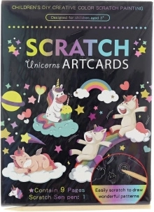 See loominguline komplekt pakub lõbusat piltide kraapimist armastatud ükssarviku motiividega. Kaasasoleva puust tööriista abil paljastad õrnalt värvikihte ja lood efektseid pilte, mis sobivad nii väljapanekuks kui ka kinkimiseks.