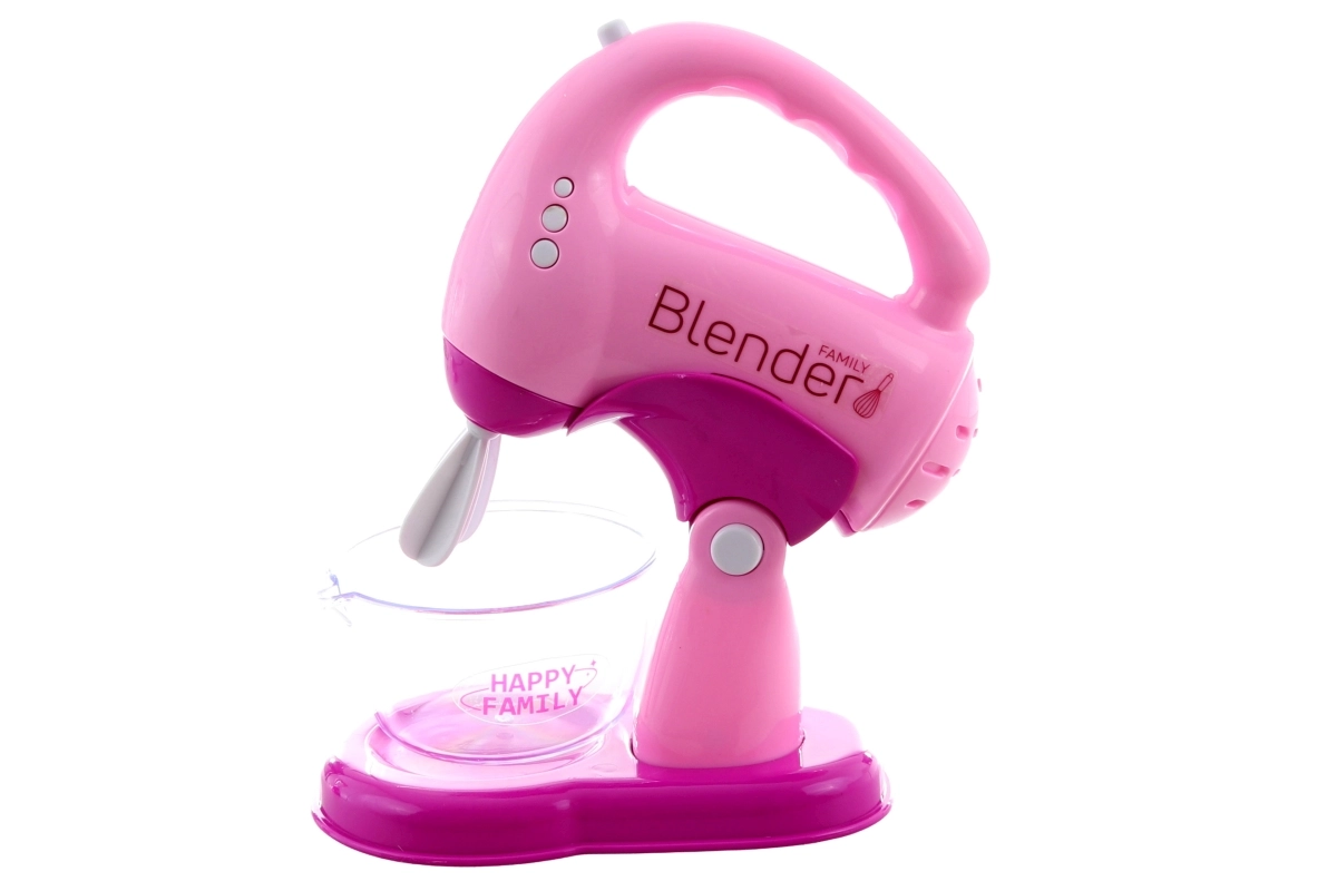 Roosa mikser ühe nupu, läbipaistva kannu ja nähtava “teraga” süttib ja pöörleb mängu ajal.