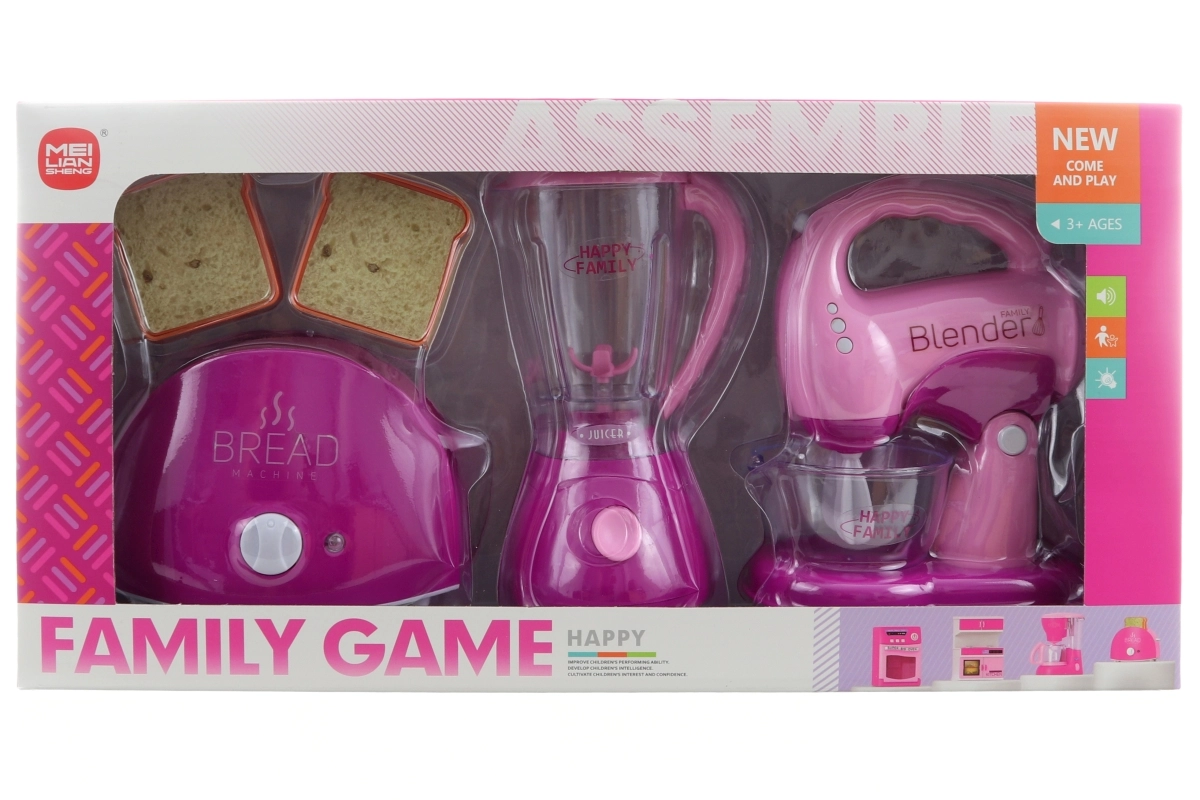 See värvikas kodumasinate komplekt toob lastele ehtsa kokkamiskogemuse. Röster süttib sisselülitamisel, teeb helisid ja mõne hetke pärast laseb röstsaiad üles. Mikseril on läbipaistev anum, süttib ja pöörleb, samuti ka vahustaja, mis lisaks keerutab realistlikult vispleid. Kõik on kohandatud turvaliseks laste mänguks.