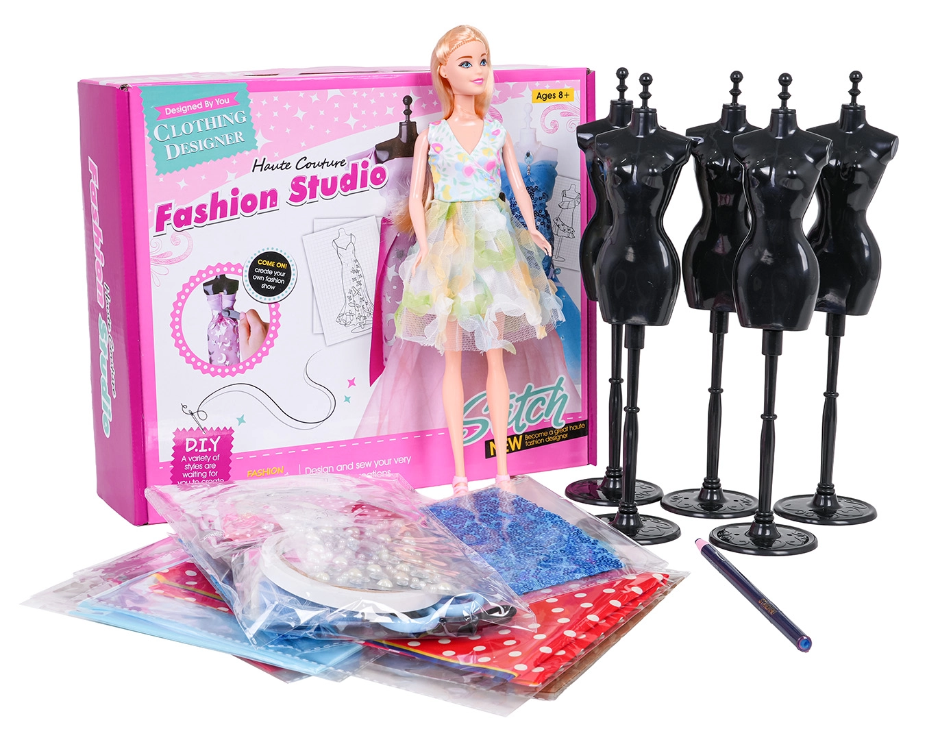Avasta moe võlu selle loomingulise komplektiga väikestele moeloojatele alates 8. eluaastast. Komplekt sisaldab kõike, mida on vaja nukkudele kleitide kujundamiseks ja õmblemiseks: nukk, 5 mannekeeni, värvilised kangad paberist lõigete/krokiidega, käärid, niidid, paelad, aplikatsioonid, teip ja nõelad. Arendab peenmotoorikat, loovust ja esteetilist taju – ideaalne kui kingikomplekt.