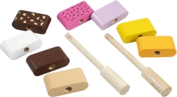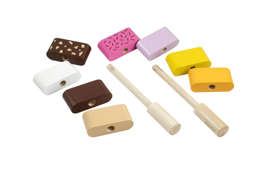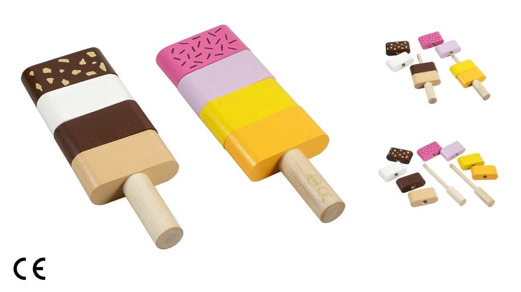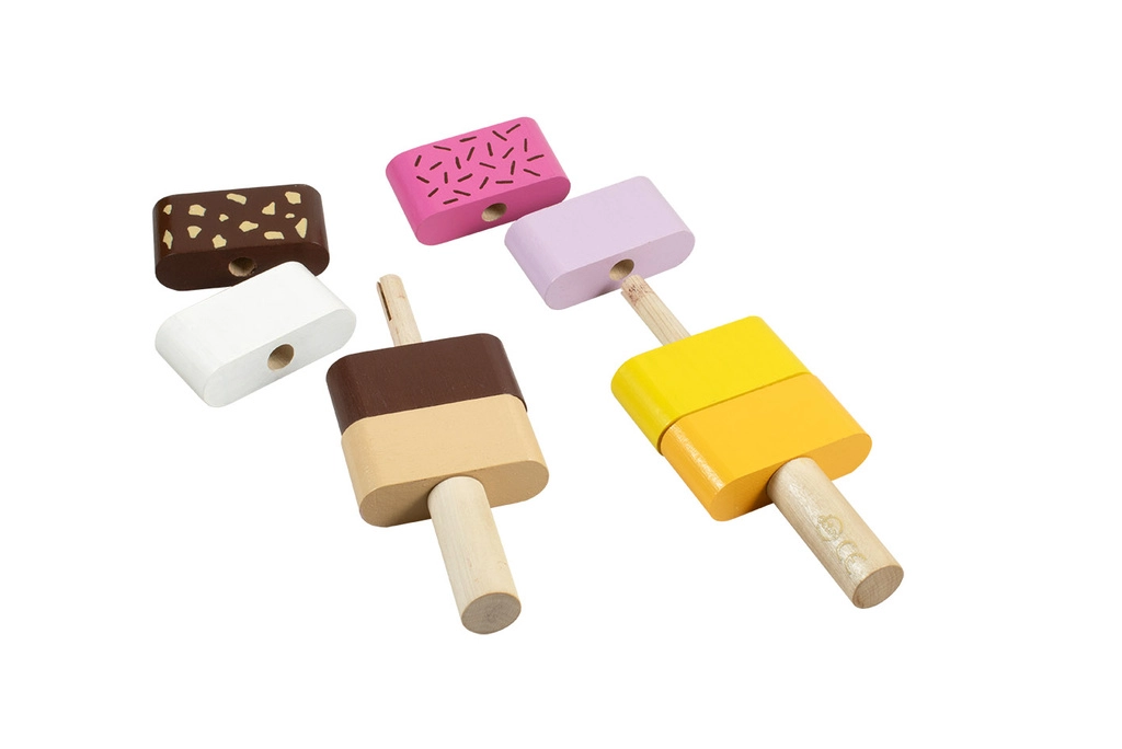 Paku lastele loomingulist lõbu DETOA puidust kokkupandavate jäätistega. Igal tükil on siledad, meeldivad servad ja värvilised segmendid, mis libisevad kergesti puidust pulkadele. Väikesed kondiitrid harjutavad sõrmi, õpivad värve eristama ja loovad oma värvikombinatsioone.