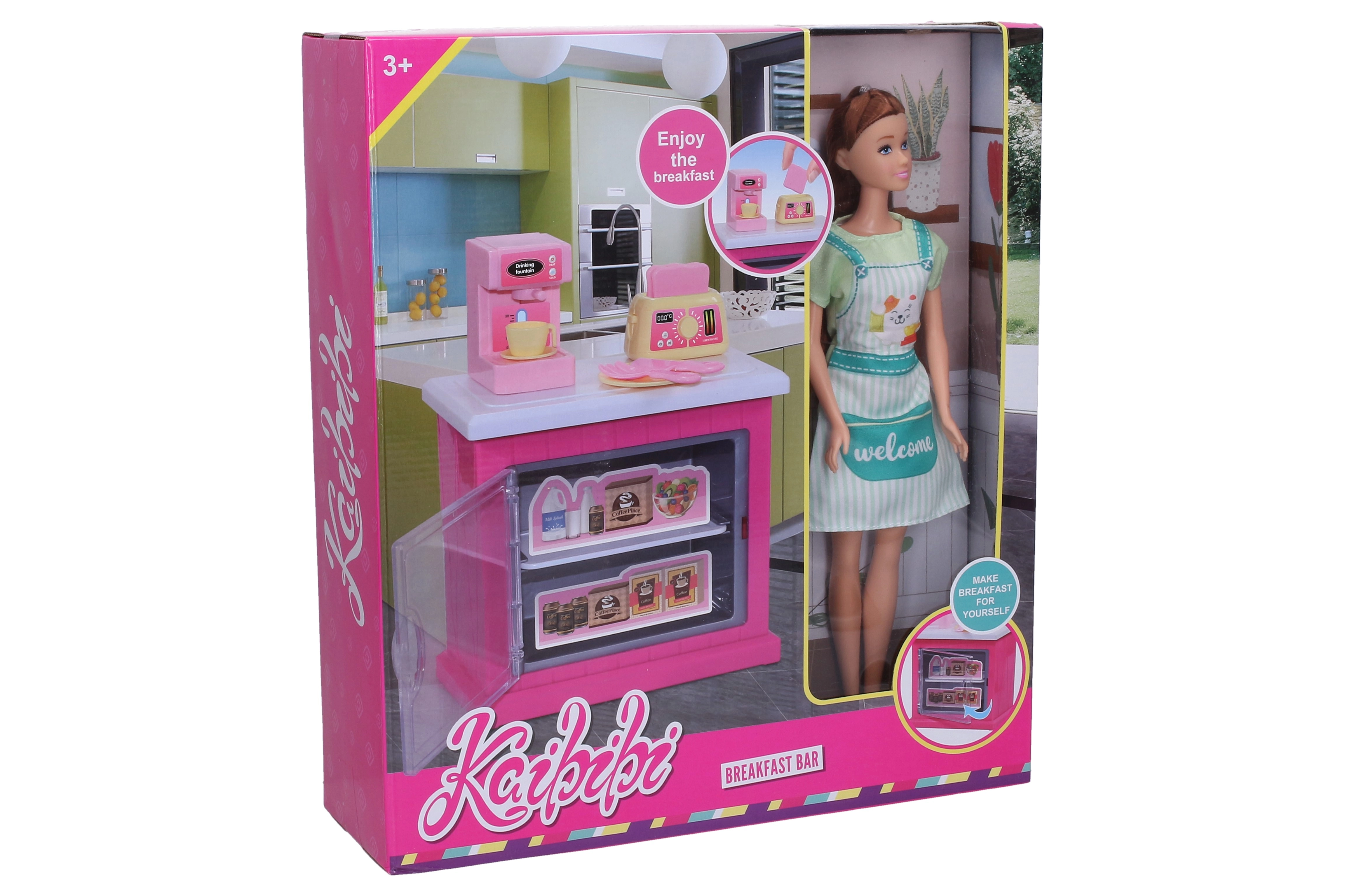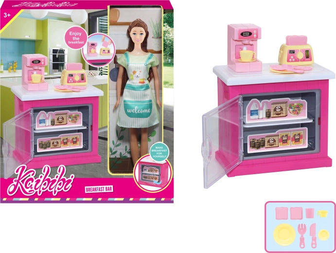Komplektis on stiilne köögikapp, funktsionaalsed tarvikud nagu kohvimasin ja röster ning muud köögitarvikud, millega lapsed saavad hõlpsalt valmistada “kohvikese” jooke ja krõbedaid röstsaia viilud külalistele.