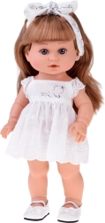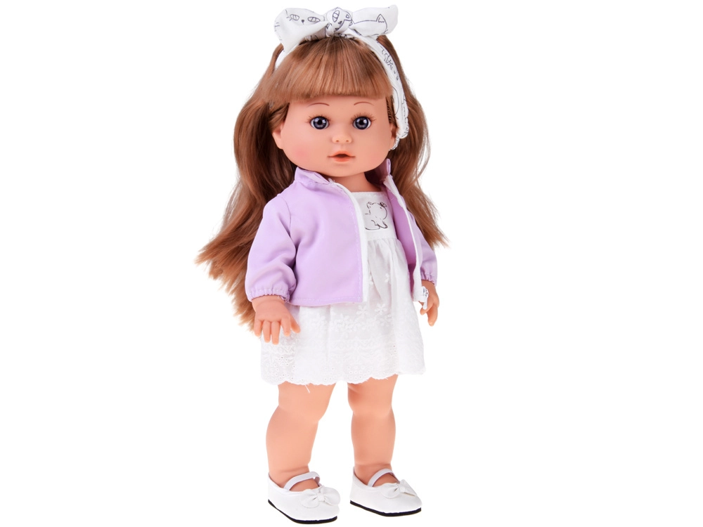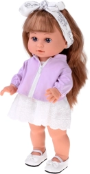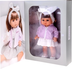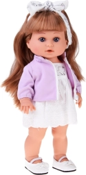Avastage armas pikkade juustega 38 cm kõrgune nukk, mis rõõmustab väikseid juuksureid ja moesõpru. Tal on realistlikud näojooned, paksud pikad pruunid juuksed kammimiseks, liikuvad jäsemed ning ta kannab valget pitsist kleidikest koos lillas toonis jakkiga. Komplektis on juuksehari lõpututeks soenguteks ja loovaks mänguks.