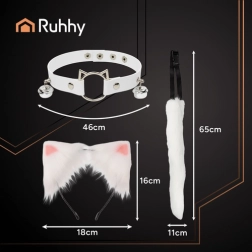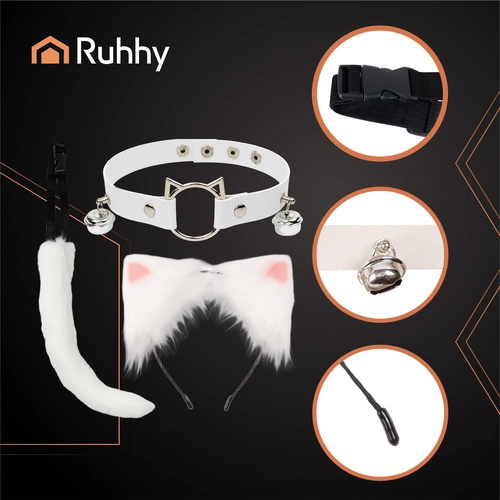 Stiilne 3-osaline RUHHY valges toonis komplekt muudab iga riietuse hetkega eriliseks. Komplektis on pehme saba vormitava traadiga, peavõru kõrvadega ning reguleeritav kellukestega choker. Ideaalne cosplay’ks, pildistamiseks, pidudeks ja TikTokiks – see on kerge, mugav ja kohe kandmiseks valmis. Täielik 3-ühes, mõnus kunstkarvast viimistlus, reguleeritav choker ja saba ning universaalne suurus erinevatele kehakujudele.