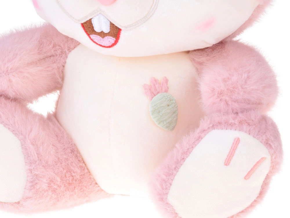 Sametpehme plüüs puuderroosas toonis koos kontrastse kreemja kõhuga kutsub kallistama ja pakub rahustavat puudutust.