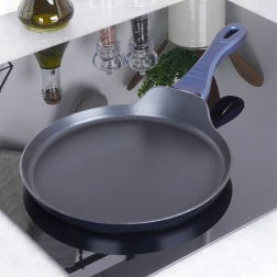 Pehme silikoonpinnaga käepide püsib jahe ja on käes mugav. Madal serv lihtsustab taina valamist, tõstmist ja pannkookide ümberpööramist. Pann on PFOA ja PTFE vaba, vastupidav puhastusvahenditele ning tänu induktsioonpõhjale sobib kõigile keedupindadele.
