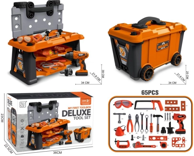 Tänu ratastele ja käepidemele on kohver kerge kaasas kanda, nii et lapsed saavad oma töökoja igale poole kaasa võtta. Komplekt toetab peenmotoorika, silma-käe koordineerimise ja fantaasia arengut. Ohutud, lastele kohandatud plastiktööriistad sobivad ideaalselt väikeste meistrite koduseks töökojaks.