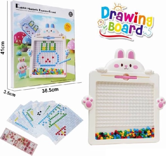 Jänesekujuline magnettahvel pakub rõõmu lastele alates 3. eluaastast. Võimaldab lihtsat joonistamist magnetpliiatsiga, šabloonide kasutamist ja korduvat kustutamist. Suurepärane peenmotoorika arendamiseks, loovuseks ja kujundite õppimiseks.