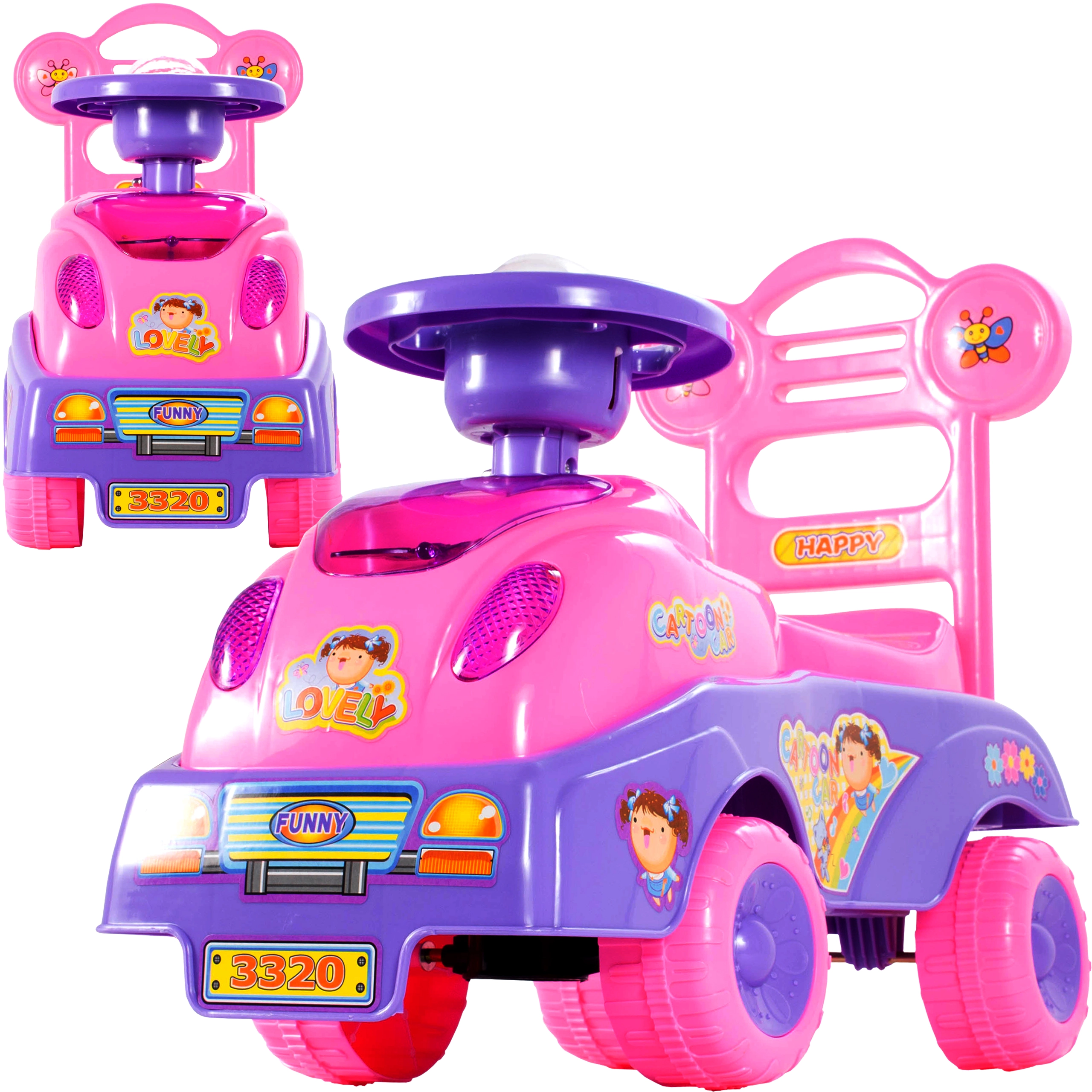 Kerge ja stabiilne lükatav sõiduk käimisabi funktsiooniga väikestele printsessidele. Pakub 17 meloodiat, mugavat istet ja turvalist seljatuge. Tänu kompaktsetele mõõtmetele sobib ideaalselt nii koju kui ka jalutuskäikudele. Kandevõime 20 kg, toide 3× AA.