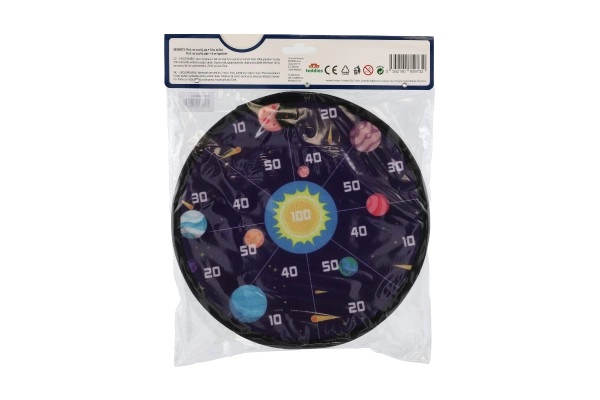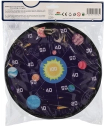 Üks sihtmärgi pool on kujundatud pilkupüüdvate värvide ja numbritega traditsioonilise mängu jaoks, samas kui teine pool toob kosmose temaatika koos planeetide piltidega. Lapsed saavad harjutada matemaatikat, liites punkte, mis saadakse üksikute visetega.