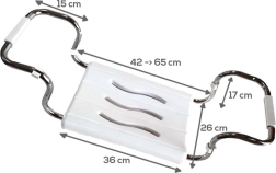 Professionaalne vannitool on ideaalne abivahend eakatele, piiratud liikuvusega inimestele ja taastumisperioodiks. Vastupidav kroomitud terasraam ja tugev plastikust istmepind (u 36 × 26 cm) tagavad stabiilsuse ja pika kasutusea. Iste paigaldatakse lihtsalt üle vanni servade ning tänu reguleeritavatele õlgadele 42,5–65 cm sobitub see eri laiusega vannidele.