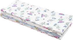 Avastage soodne NEW BABY puuvillaste mähkmete pakk, mis tänu kvaliteetsele materjalile on pehmed, hingavad ja väga imavad. Universaalne mõõt 60×80 cm (u 58×78 cm) sobib nii jalutuskärusse, võrevoodisse kui ka mähkimisalusele. Iga mähe on kaunistatud lõbusa trükiga, mis võib erineda vastavalt jooksvale valikule.