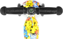 Tõukeratas kasvab koos lapsega tänu reguleeritavale lenksule vahemikus u 67–90 cm. Tagumine porilaud integreeritud jalapiduriga võimaldab kiiret ja kindlat peatumist. Eesmised LED-rattad süttivad sõidu ajal, mis suurendab nii nähtavust kui ka atraktiivset välimust.