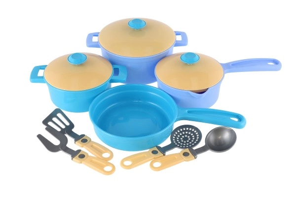 Komplektis on kolm potti koos kaantega ja neli erinevat köögitarvikut, mis sobivad erinevateks kujuteldavateks kokkamistegevusteks.