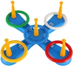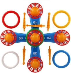 See lõbus mäng on ideaalne kõige väiksematele lastele. Komplektis on rist viie ogaga, millele lapsed viskavad värvilisi plastist rõngaid, et koguda punkte. Iga vise, mil rõngas õnnestub ogale saada, toob punkte, mis toetab võistlusmomenti ja täpsust. Teine mänguviis toimib samal põhimõttel, kuid ogad on asendatud pallikorvikestega, mis pakub uut väljakutset.