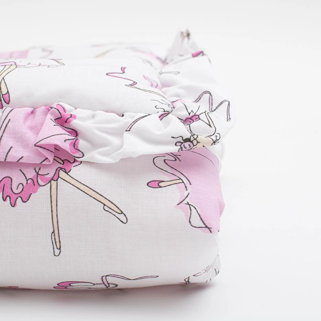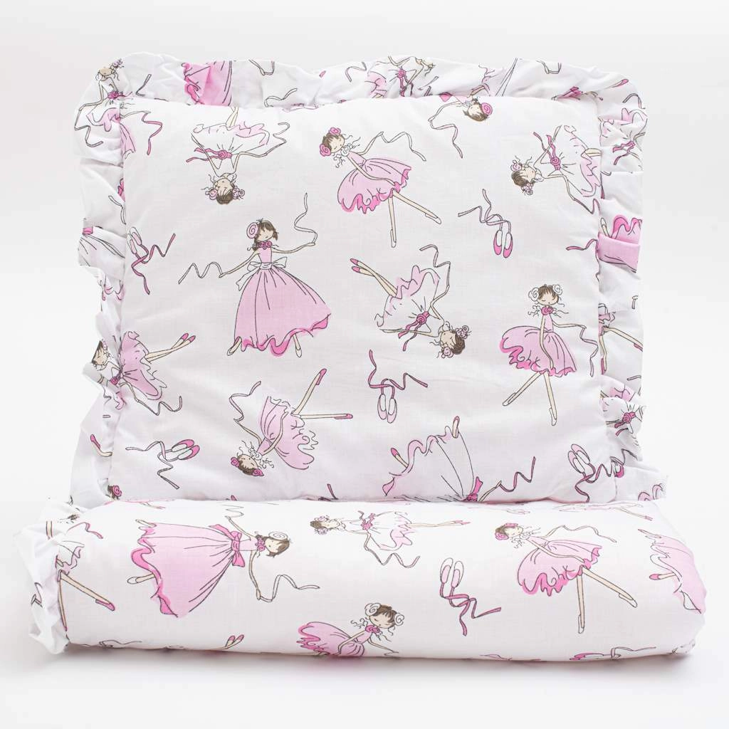 Õrn ja mugav vankrikomplekt väikese padja ja volangiga tekikesega, armsa ballerina mustriga. Valmistatud kvaliteetsest 100% puuvillast koos antiallergilise täidisega, et tagada beebile ohutus ja mugavus. Hingav, nahale õrn ning rahustava disainiga igasse vankrisse.