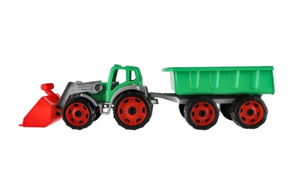 See kopplaaduri ja haagisega traktor on valmistatud tugevast plastist, mis peab vastu laste mängule ja talub kahjustusi.