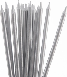Loo unustamatu soovide puhumise hetk pikkade hõbedaste küünaldega. Tänu 14,5 cm kõrgusele paistavad need kenasti silma ka suurematel tortidel, varjamata seejuures kaunistusi. Praktilised valged alused tagavad küünalde turvalise ja kindla paigutuse tordi põhja.
