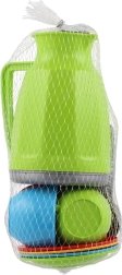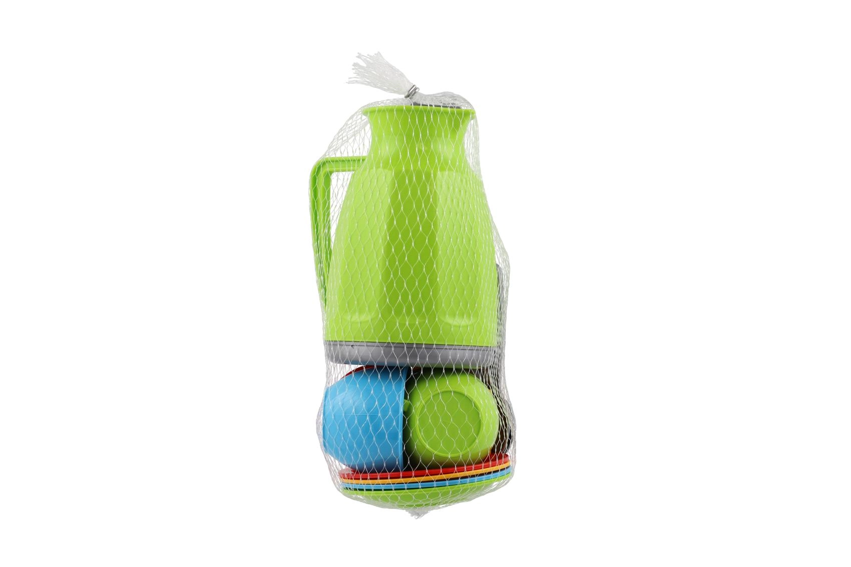Komplektis on kõik, mida on vaja väikese teelaua jaoks: teekann, tassid koos alustaldrikutega ja lusikad rõõmsates värvides. Pakitud praktilisse võrku, mis lihtsustab nii hoiustamist kui ka kaasaskandmist. Sobib alates 12. elukuust.