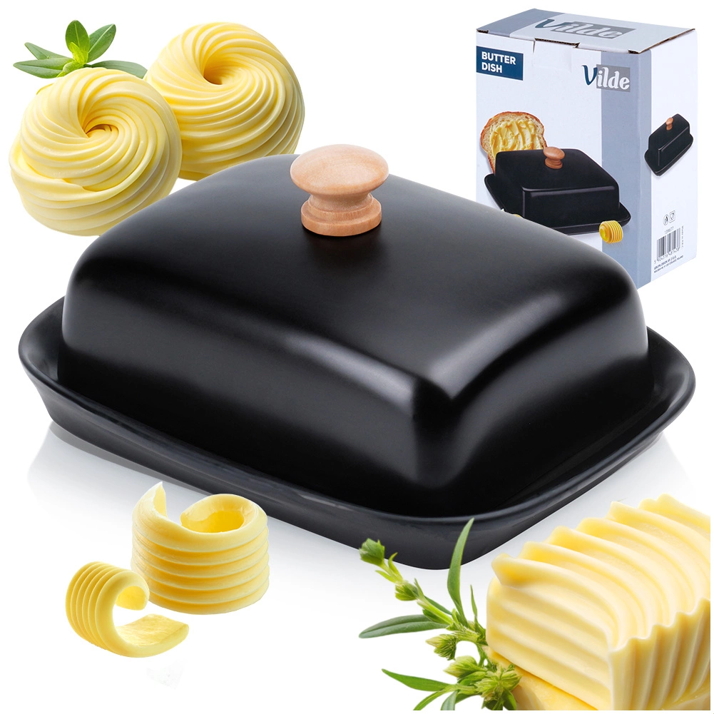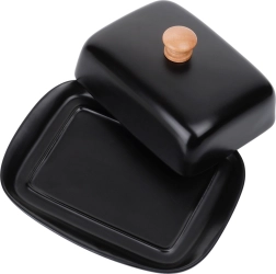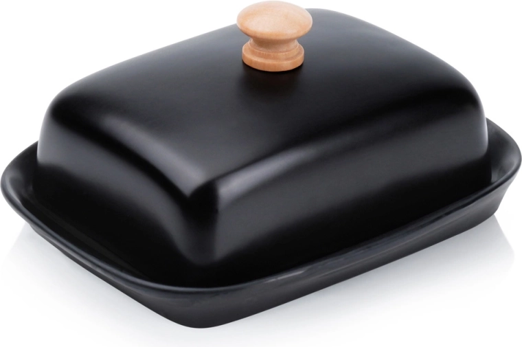 See stiilne kvaliteetsest keraamikast musta viimistlusega võinõu sobib suurepäraselt nii igapäevaseks kasutuseks kodus kui ka lauas serveerimiseks. Puidust nupp kaanel võimaldab mugavat tõstmist, tihedalt sulguv kaas kaitseb võid kuivamise ja kõrvaliste lõhnade eest.