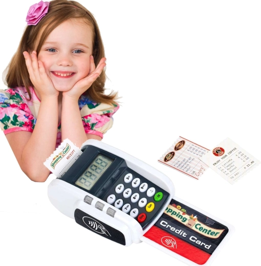 See kompaktne terminal jäljendab tõetruult päris seadet: lapsed saavad vajutada numbriklaviatuuri, lähendada maksekaarti ja „printida” tšekke, et mängukassa oleks võimalikult realistlik. Valgus- ja heliefektid annavad igale tehingule päriselu tundemärgi ning toetavad sotsiaalsete oskuste arengut.