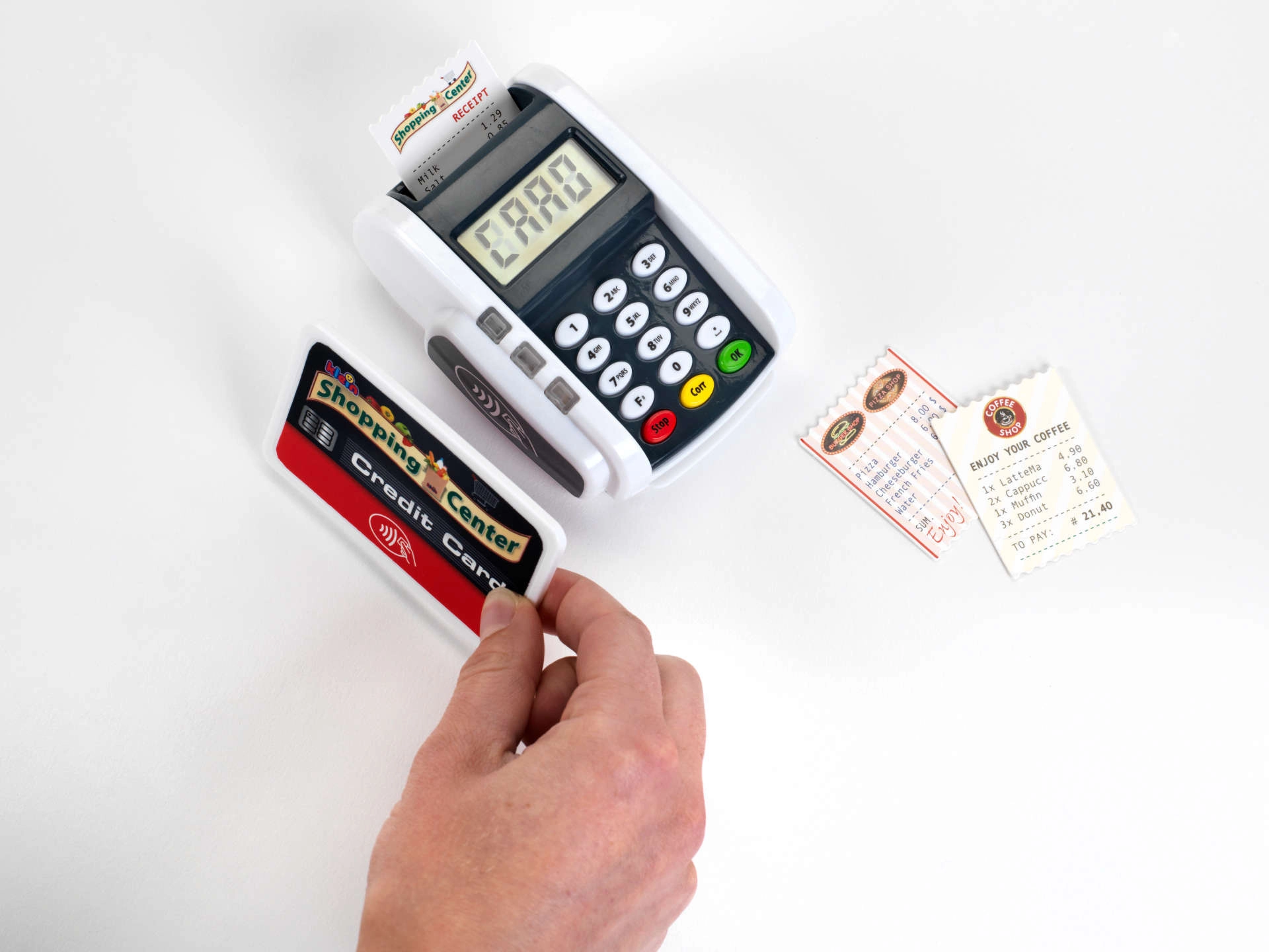 Lapsed saavad proovida kaardi lähendamist ja klaviatuuri vajutamist – ideaalne kassapidaja rollimänguks.