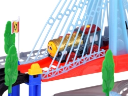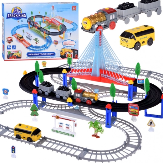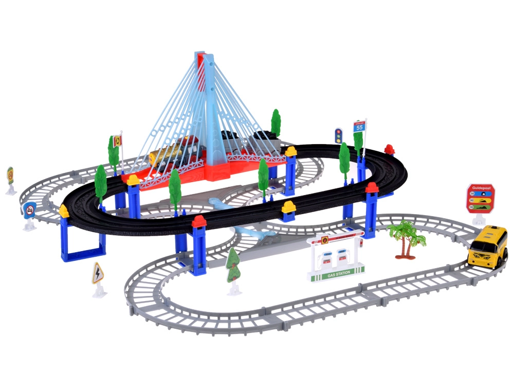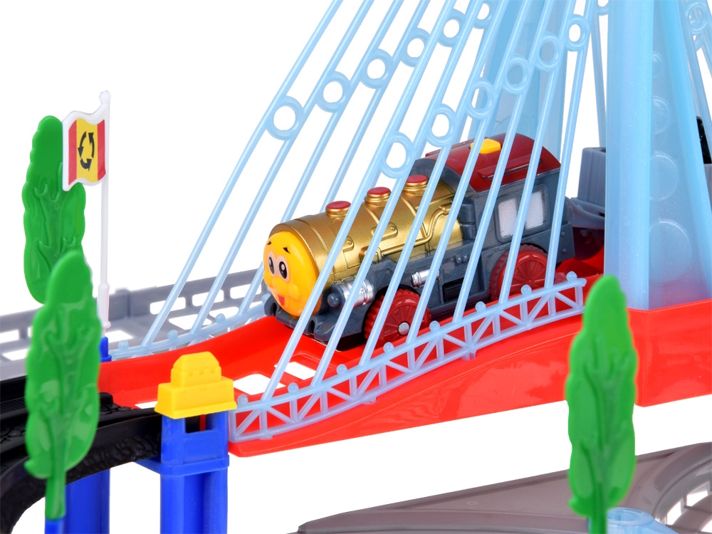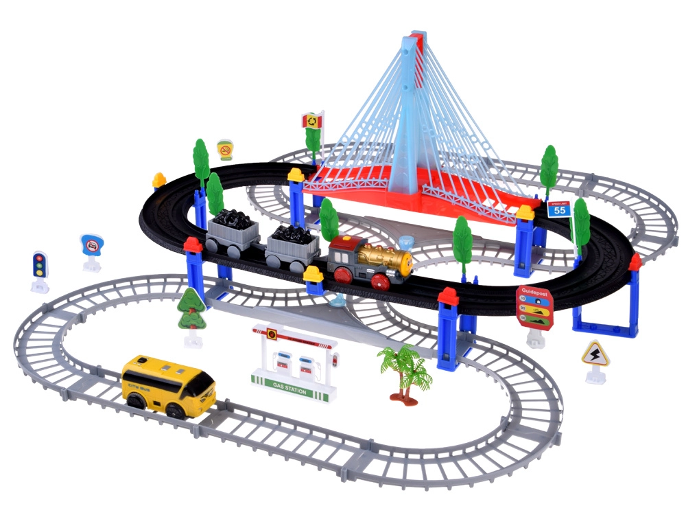 See elektriline rongirada mitmetasandiliste rööbaste ja rippuva sillaga pakub lastele tunde loovat mängu. Vedur vagunitega ja kollane linnabuss liiguvad ühendatud radadel, ületavad silla ning mööduvad liiklusmärkidest, puudest ja väikesest bensiinijaamast. LED-valgustus ning lokomotiivi helid ja meloodiad lisavad mängule autentsust.