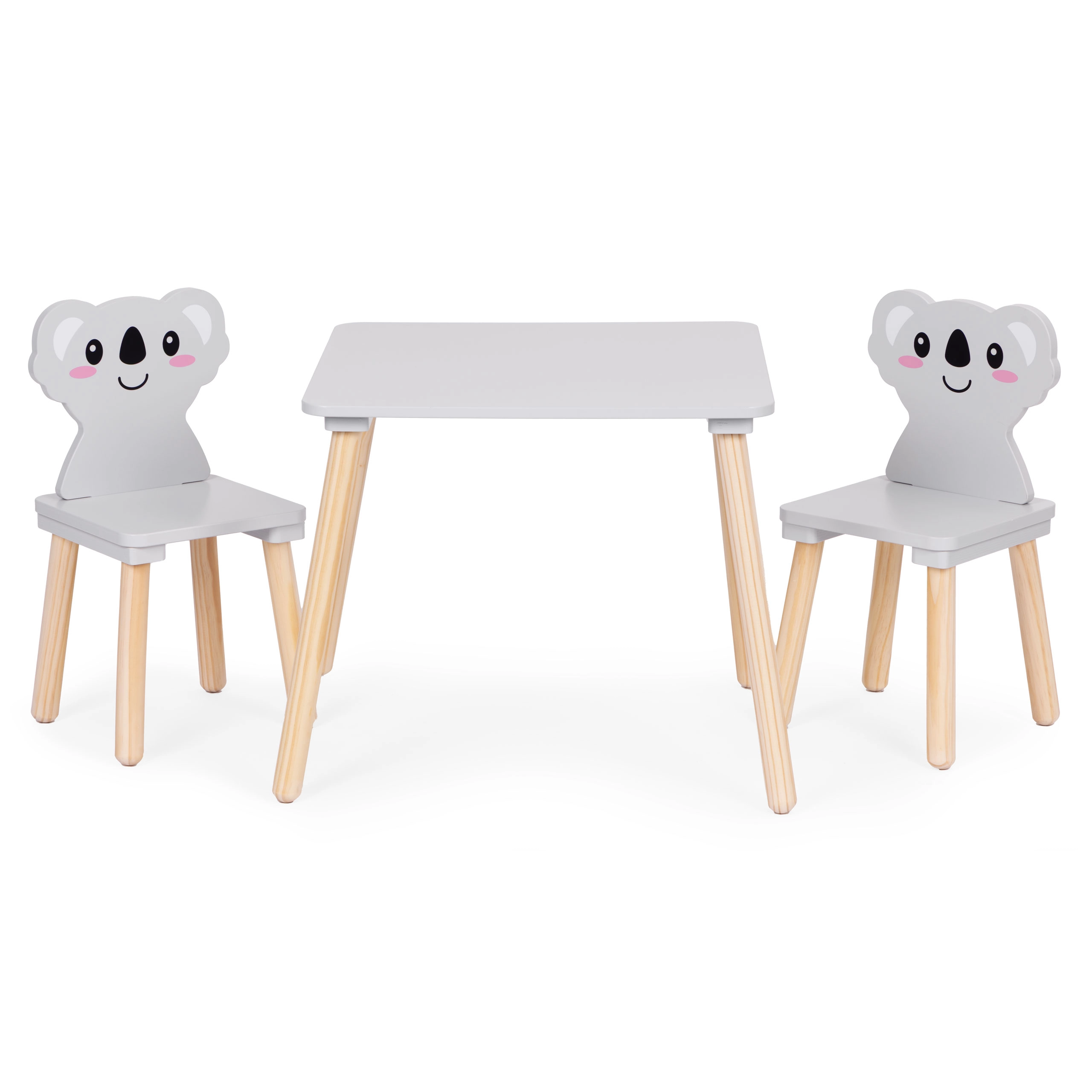 Loo oma lapsele mängu- ja õppimisnurk praktilise ECOTOYS komplektiga: laste laud ja 2 tooli armsate koala-kujuliste seljatugedega. Stabiilne puidust konstruktsioon, ümardatud servad ohutuseks ja lapsele sobiv kõrgus tagavad mugavuse joonistamiseks, ehitamiseks ja esimesteks kirjutamiskatseteks. Stiilne disain sobitub suurepäraselt lastetuppa ja mängunurka.