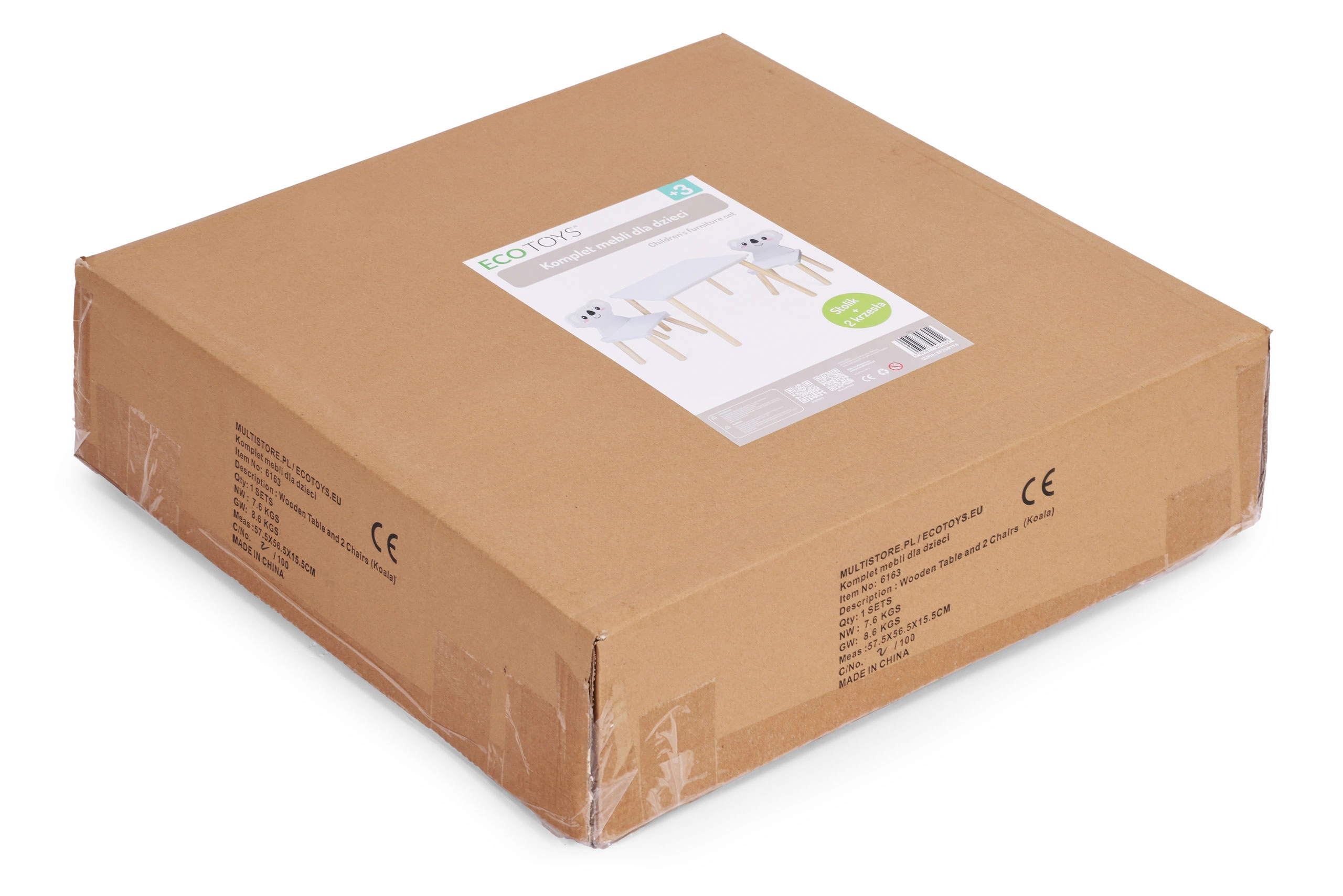 ECOTOYS mööblikomplekt muudab lastetoa loovaks mängualaks. Lai lauaplaat pakub rohkelt ruumi joonistamiseks, ehitamiseks ja meisterdamiseks ning on lihtne hooldada. Kaks tooli koala-seljatugedega rõõmustavad lapsi mängulise stiiliga ja toetavad samal ajal korrektset istumisasendit.