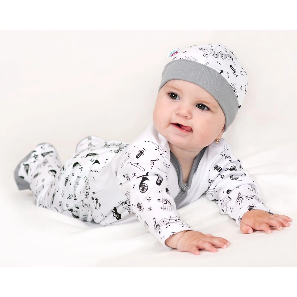 Pehme NEW BABY Music imikusärk kvaliteetsest 100% puuvillast hellitab beebi õrna nahka ja teeb igapäevase riietamise lihtsamaks. Sellel on praktiline trukk-kinnis, üleskeeratavad varrukad ja stiilne nootide motiiv kirjaga Music.