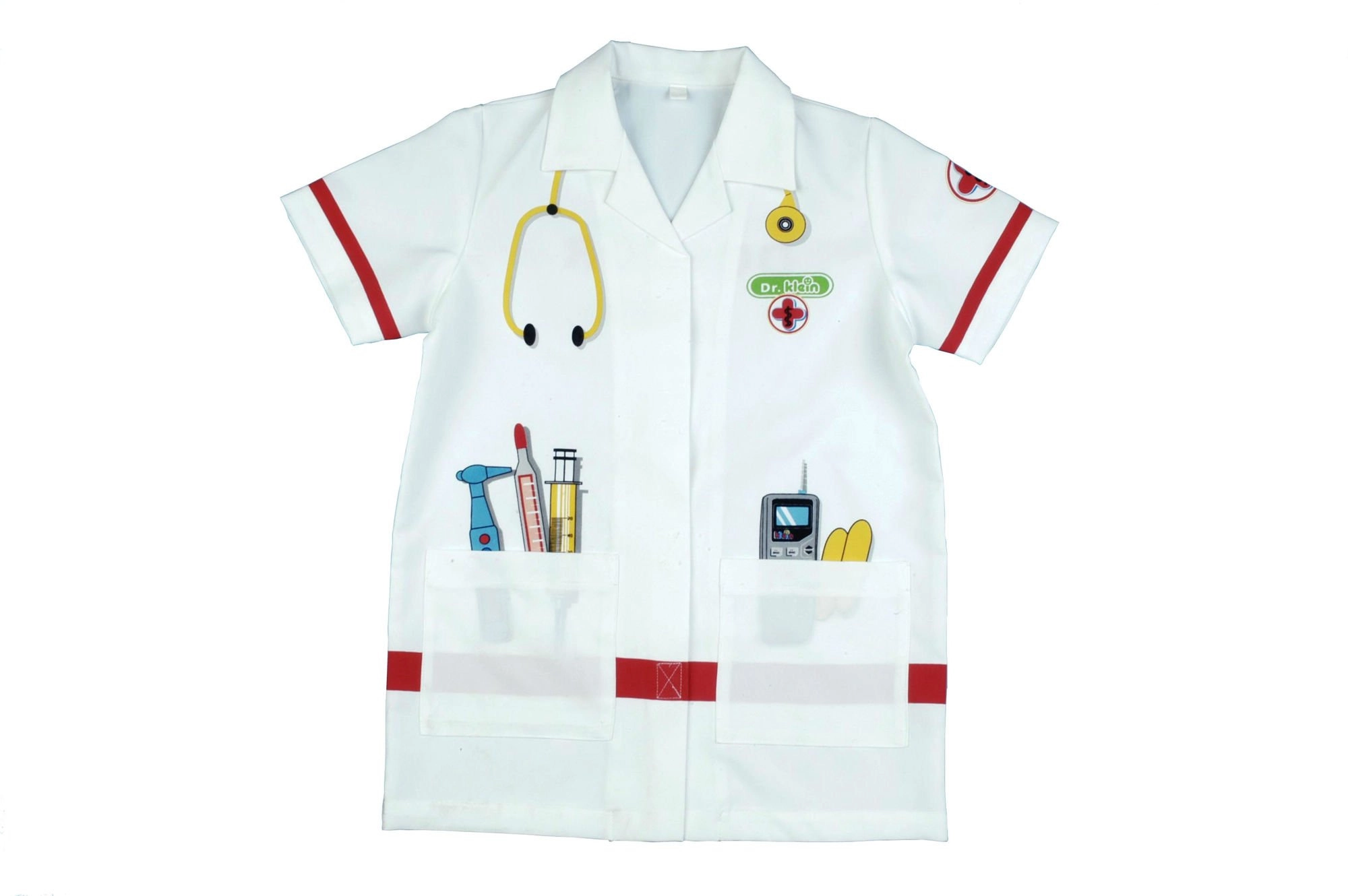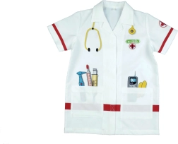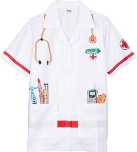 Laste arstikitl KLEIN ergutab fantaasiat ja arendab sotsiaalseid oskusi arstimängus. Kerge ja mugav lõige krae, lühikeste varrukate ning takjakinnitusega võimaldab lihtsat selga- ja äravõtmist. Värvilised tööriistaprindid lisavad mängule autentsust ja lõbu.