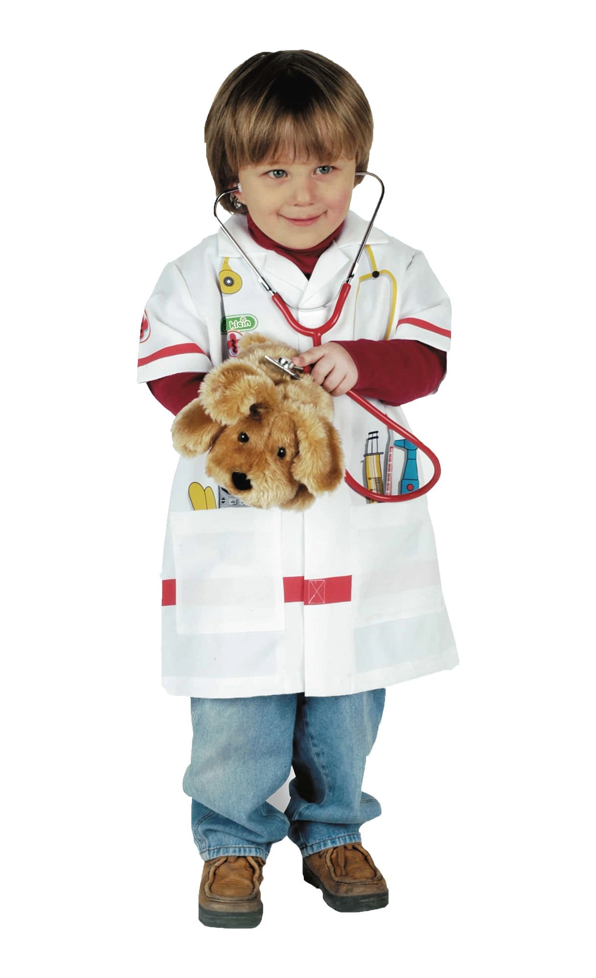 Universaalne disain sobib nii tüdrukutele kui poistele ning tänu läbimõeldud mõõtudele istub hästi lastel vanuses 3–5 aastat. Kaks suurt taskut mahutavad arstimängu väikseid tarvikuid, et kõik oleks käeulatuses.