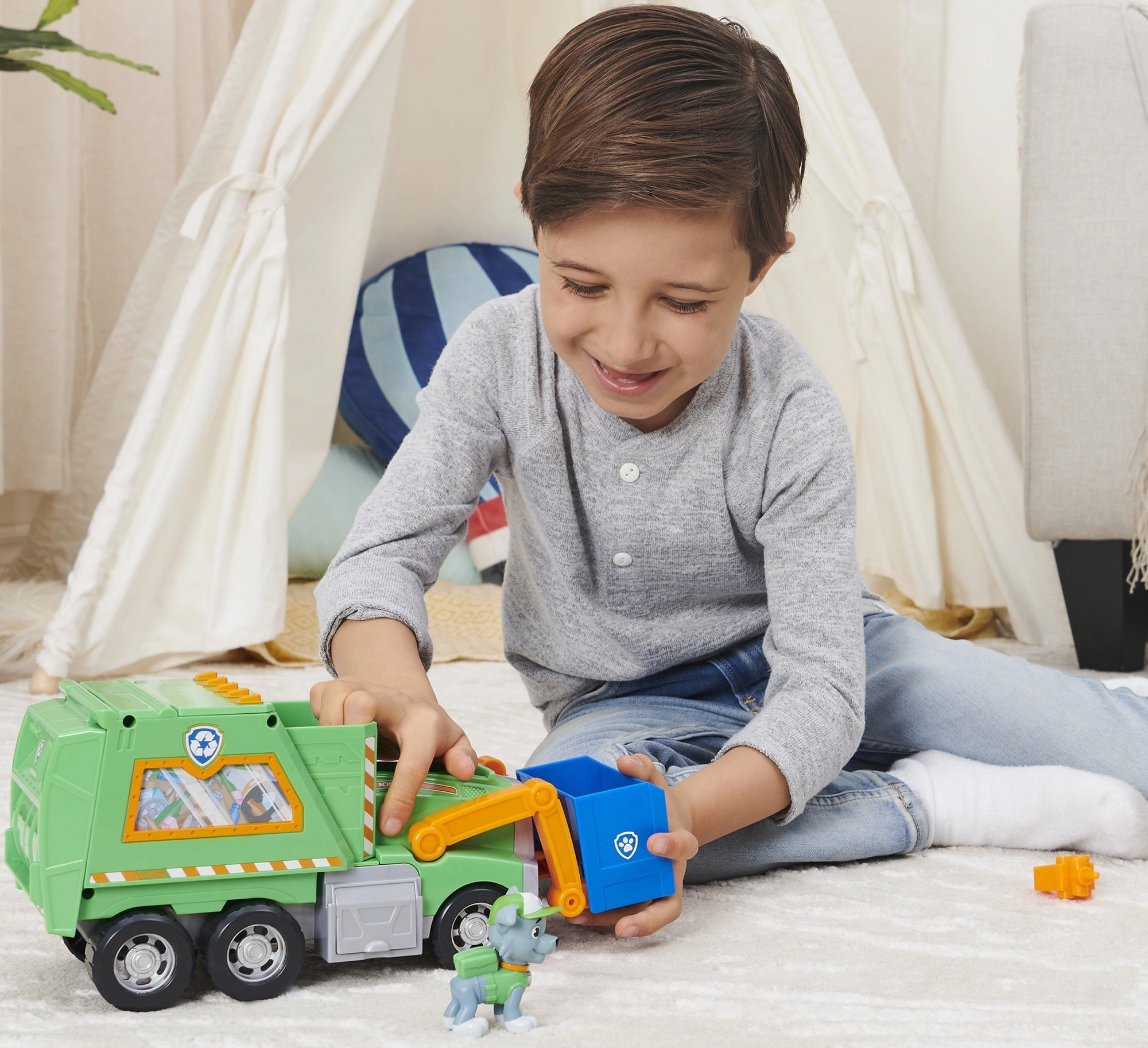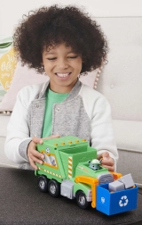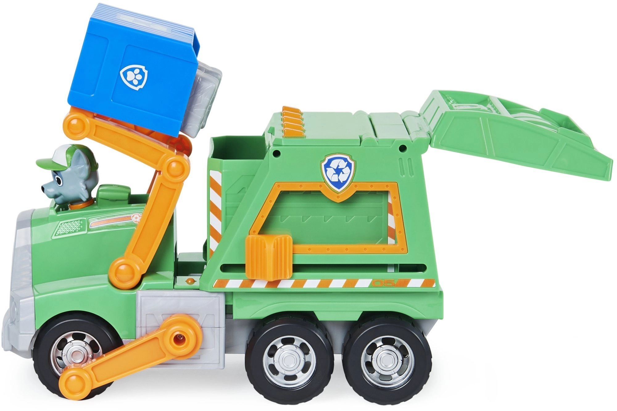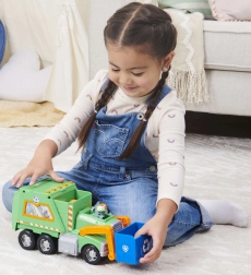 Alusta päästemissiooni puhtama linna nimel koos Rocky ja tema rohelise taaskasutusautoga. Lapsed saavad tõsta sinist korvi, laadida “prügi” ja õppida sorteerimist. Seriaalist Paw Patrol tuttavad detailid toetavad fantaasiat ja rollimängu.