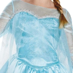 DISNEY Lumekuningannast inspireeritud kostüüm muudab iga tüdruku armastatud printsess Elsaks. Pikkade varrukatega kleit on valmistatud kergest, läikivast ja meeldivast materjalist, mis tagab mugavuse kogu päeva kandmiseks. Säravad elemendid ja sinise ning hõbeda värvilahendus annavad autentse ilme.