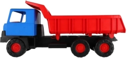 Tugev plastikust kallurauto sinise kabiini ja punase kallutatava kastiga rõõmustab väikseid ehitajaid nii kodus kui ka liivakastis. Tänu 75 cm pikkusele, vastupidavatele ratastele ja toimivale kallutusele veab see liiva, kivikesi ja mänguasju. Kerge ja ohutu konstruktsioon toetab loovat ja õuemängu.