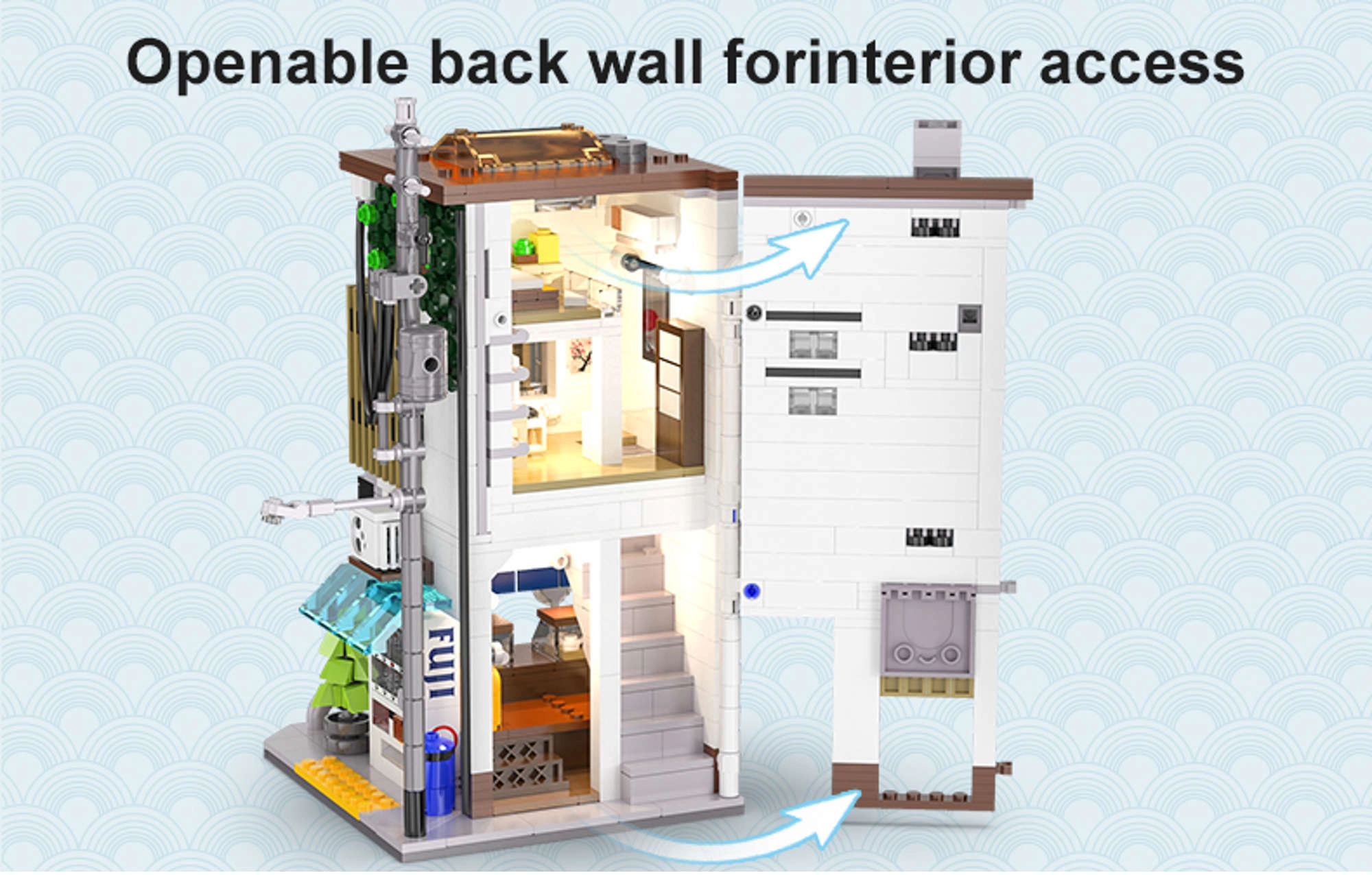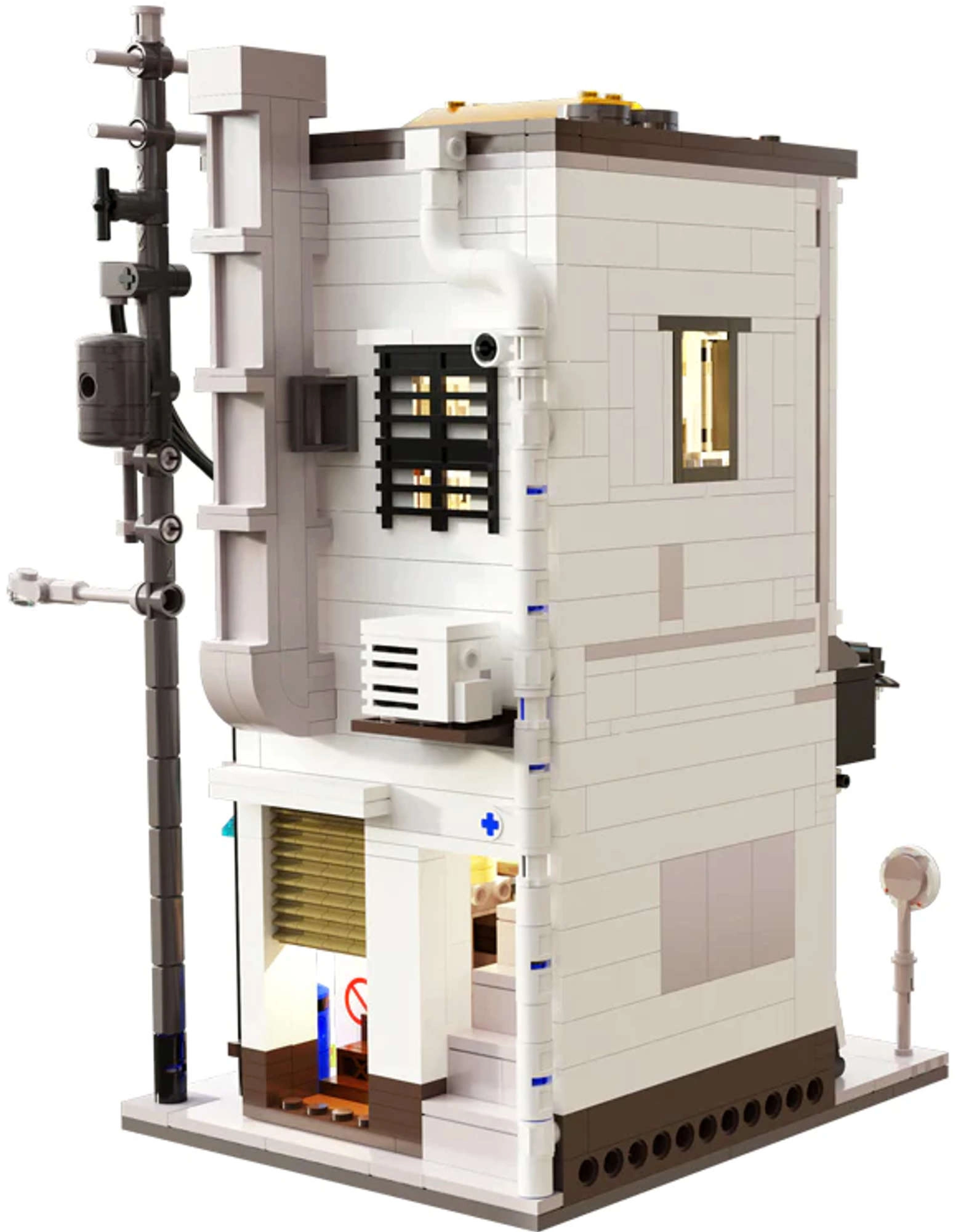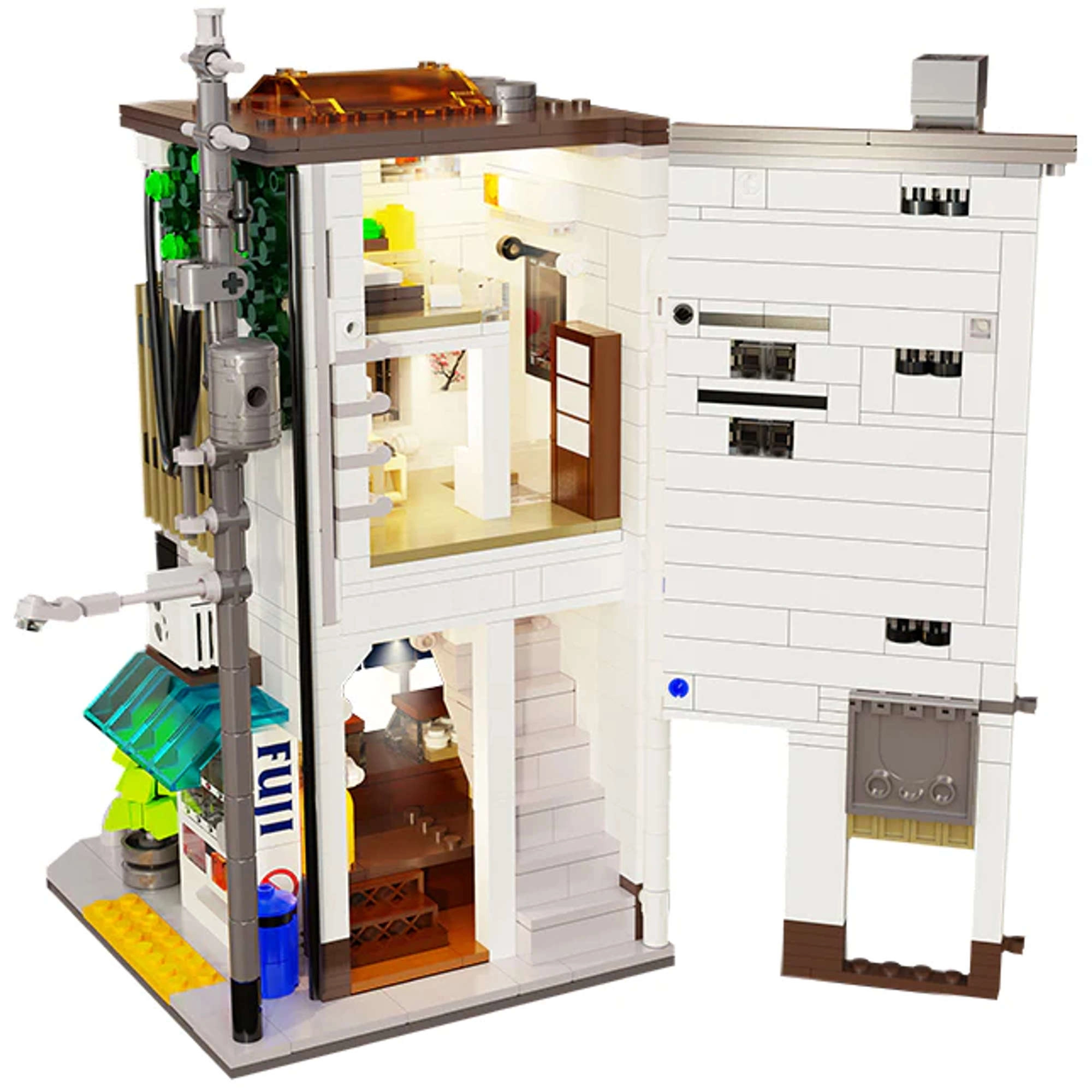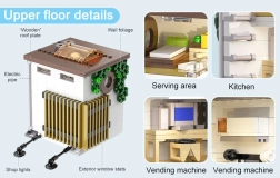 Avatav külgsein avab juurdepääsu detailirohketele ruumidele – alates müügiletist ja joogiautomaadist kuni trepi ja hubase magamistoani koos arvuti, voodi, kapi ja kliimaseadmega. Välised detailid nagu elektripost, ventilatsioonikanal, aknad, vihmaveerenn, kliimaseade, välireklaam ja menüü rõhutavad mudeli kollektsioneeritavust.