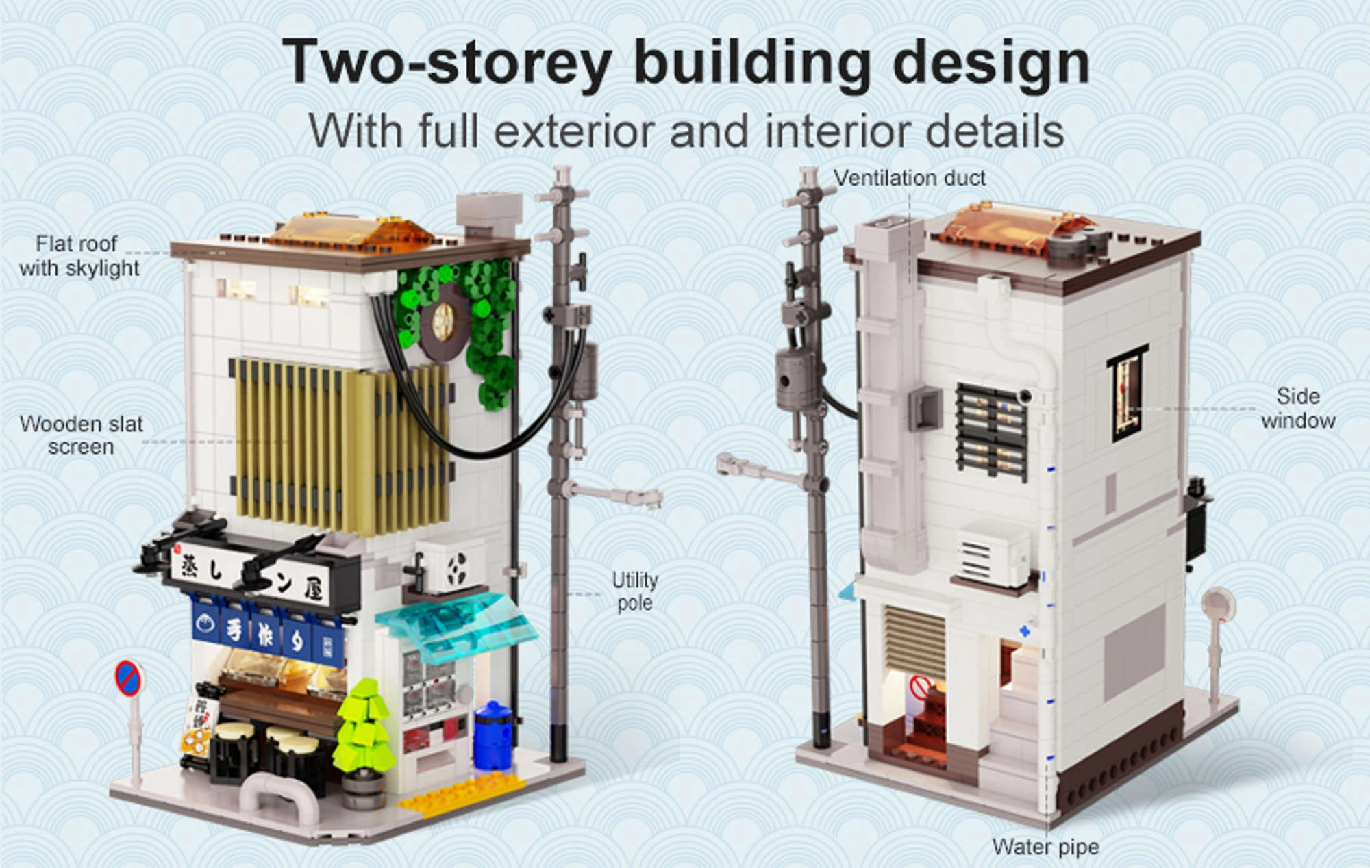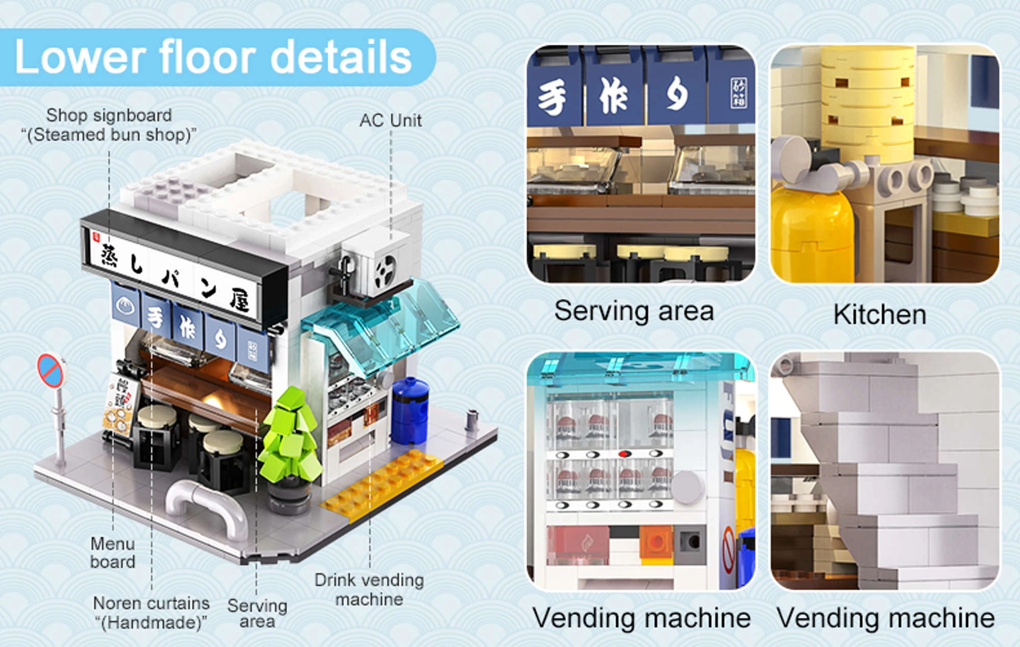 See elegantne CaDA komplekt toob teie ette jaapanipäraste tänavate ehtsa õhustiku. Kahekorruseline aurusaiakeste pood köidab realistliku fassaadiga, mugava ligipääsuga interjöörile ning LED-mooduliga, mis lisab mudelile ainulaadse õhtuse meeleolu.
