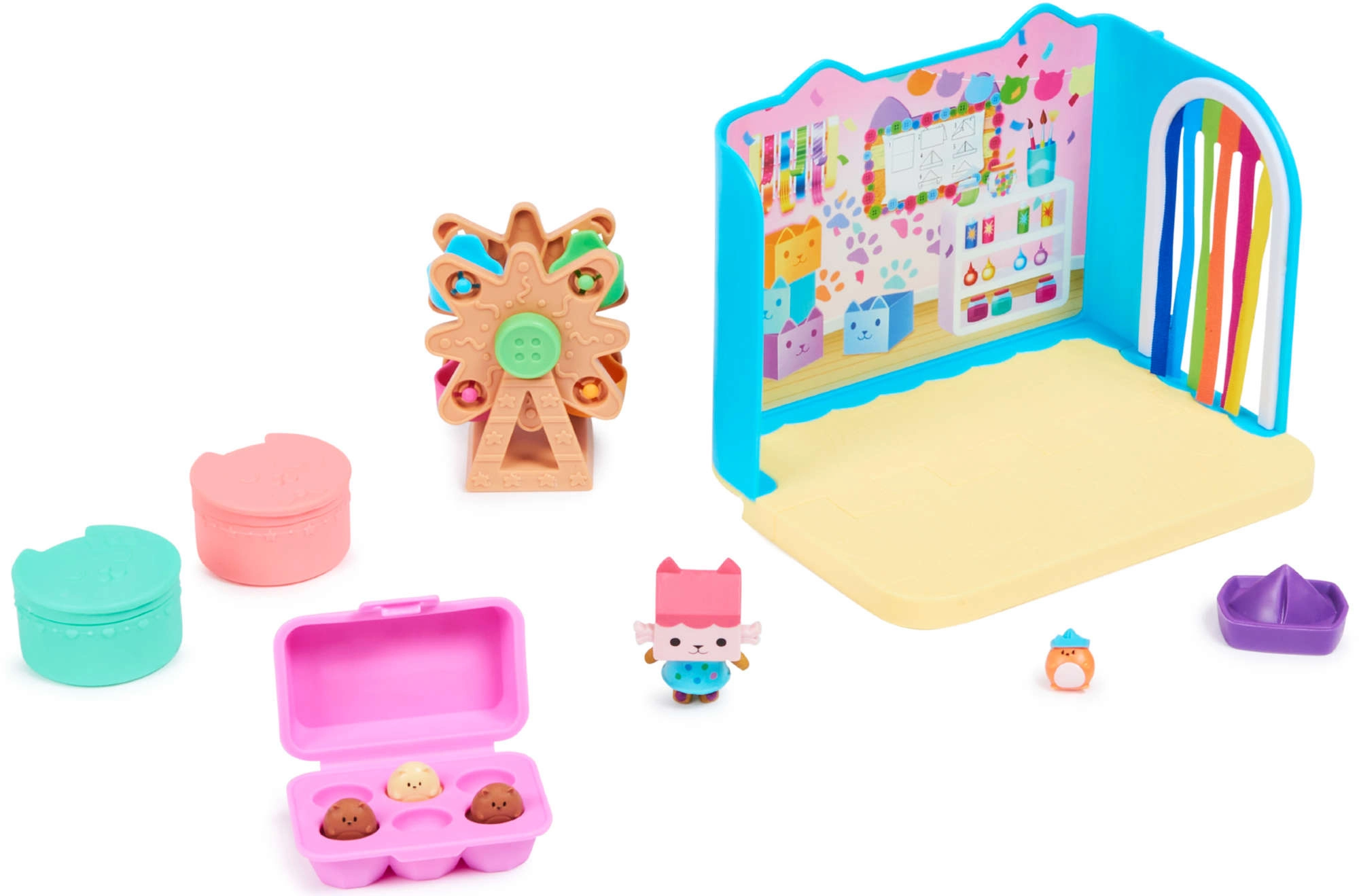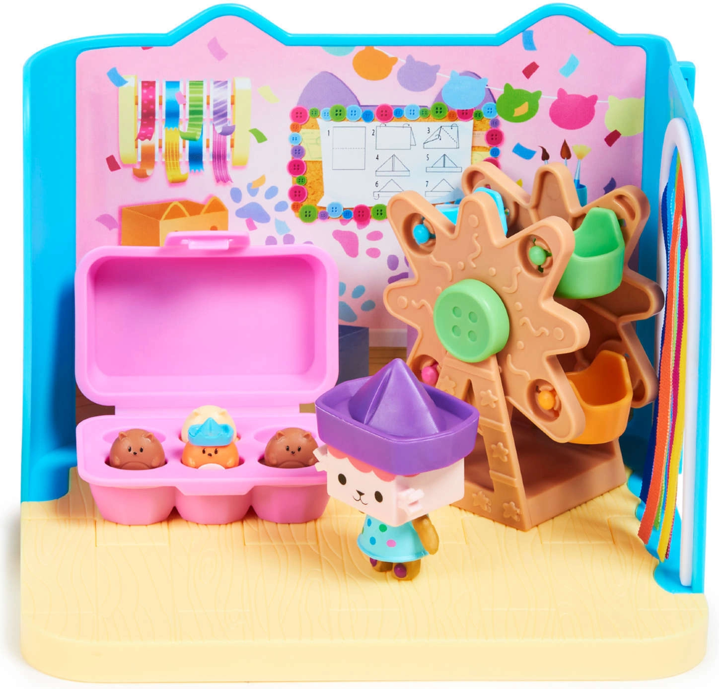 Komplekt „Baby Box Craft-a-riffic Room“ on originaalne täiendus Gabby’s Dollhouse mängusüsteemile – seda saab kasutada eraldi või ühendada suure nukamajaga.