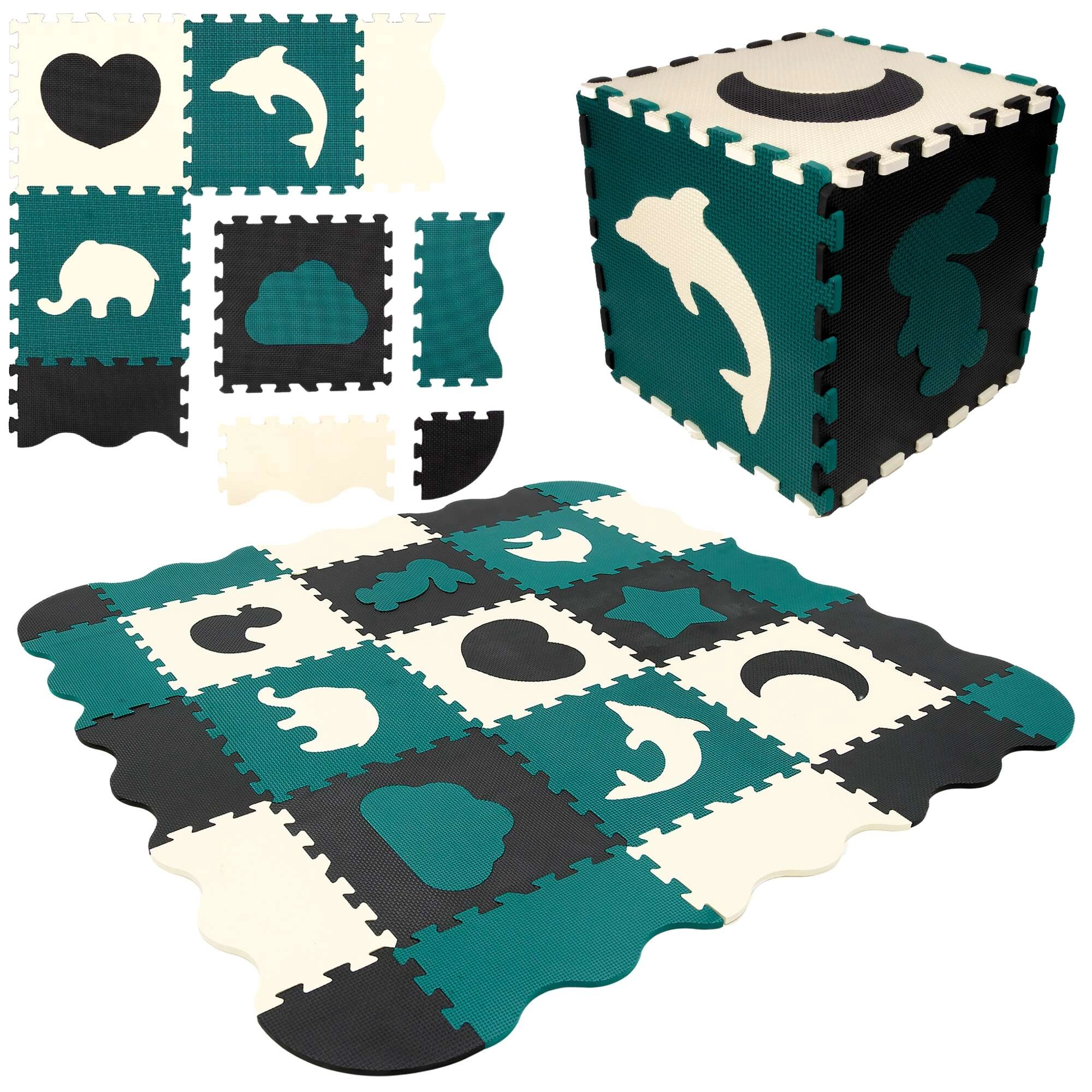 Tükke saab kasutada ka 3D puslena – eemaldatavaid loomade ja kujundite motiive saab ühendada ja kokku panna ruumilisteks objektideks (nt kuubikuks), mis arendab ruumilist mõtlemist, haaramisoskust ja koordineerimist. EVA‑materjal on ftalaatide, formamiidi, BPA ja PVC vaba, vastab EN 71 ja REACH nõuetele ning kannab CE märgistust.