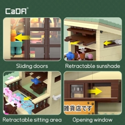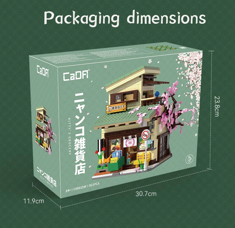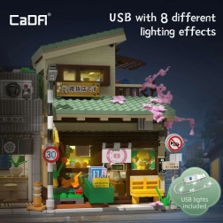 Avasta Jaapani arhitektuuri võlu CaDA ehituskomplektiga, mis 921 klotsist loob detailse modulaarse poe koos võimalusega vaadata interjööri. Komplektis on LED-valgustus 8 efektiga, liikuvad elemendid (liuguksed, väljatõmmatav varikatus, avatav aken) ning rikkalikud dekoratsioonid, sh kirsipuu (sakura), koi-tiik, sildid ja maneki-neko figuur.