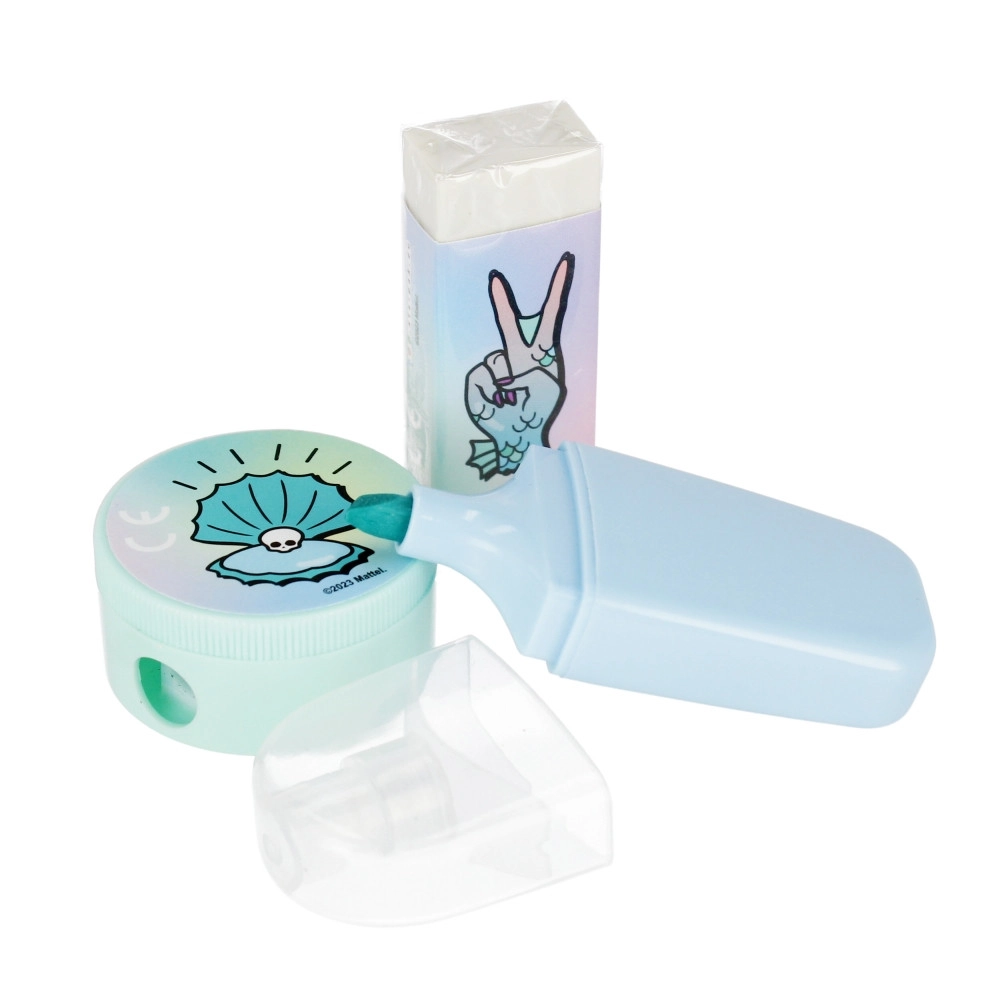 Teritaja, kustukumm ja marker lõbusas disainis teevad tekstitöö ning vigade parandamise lihtsaks.