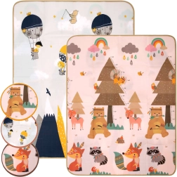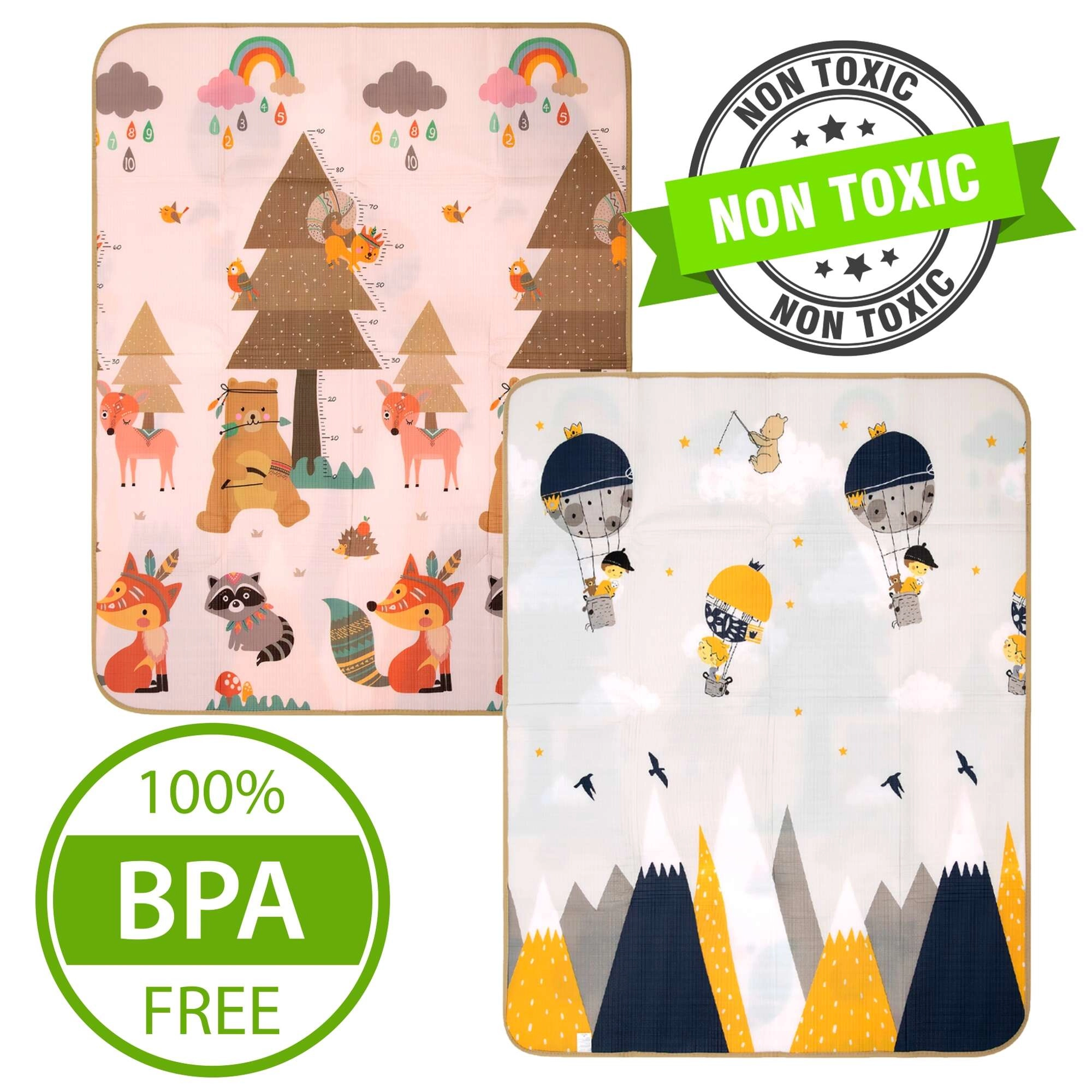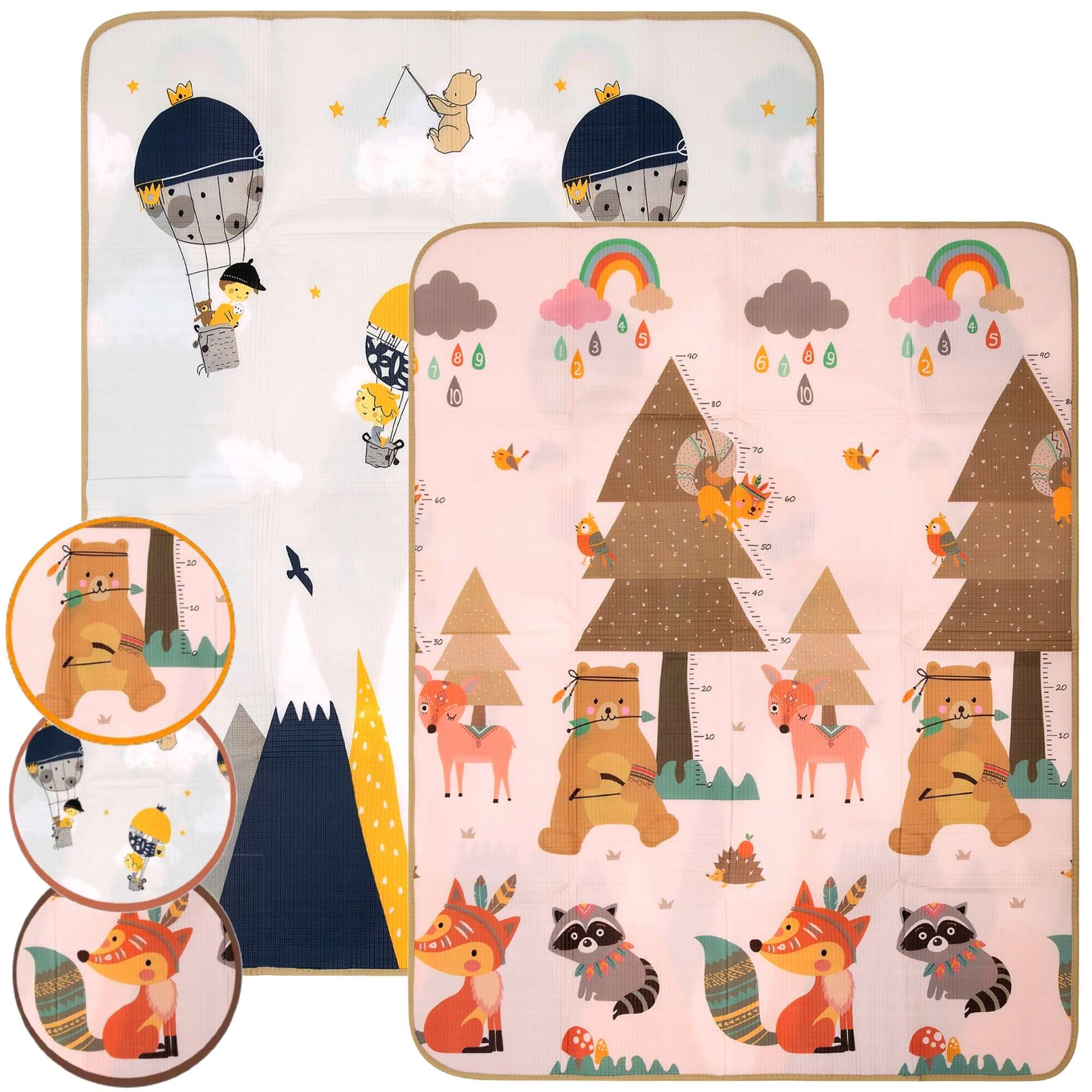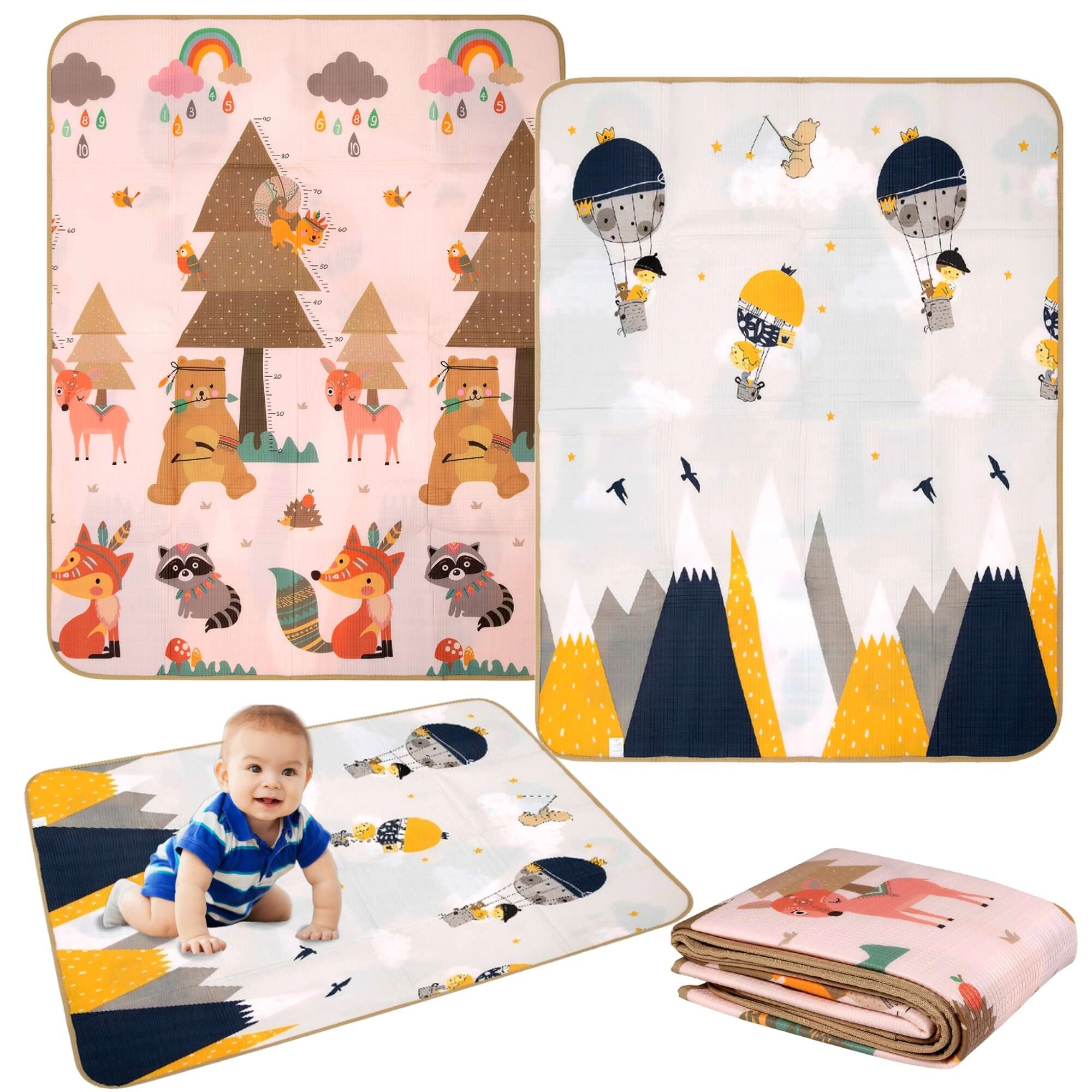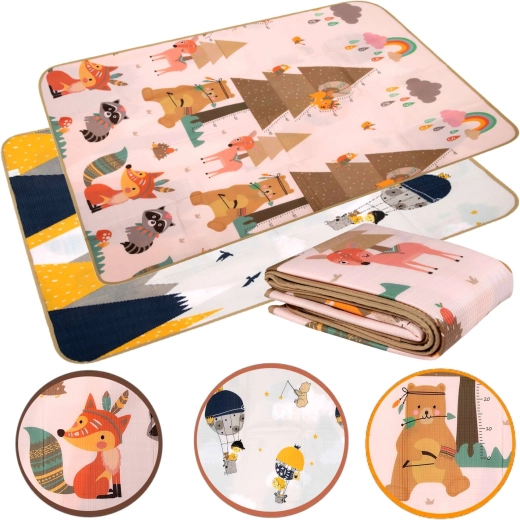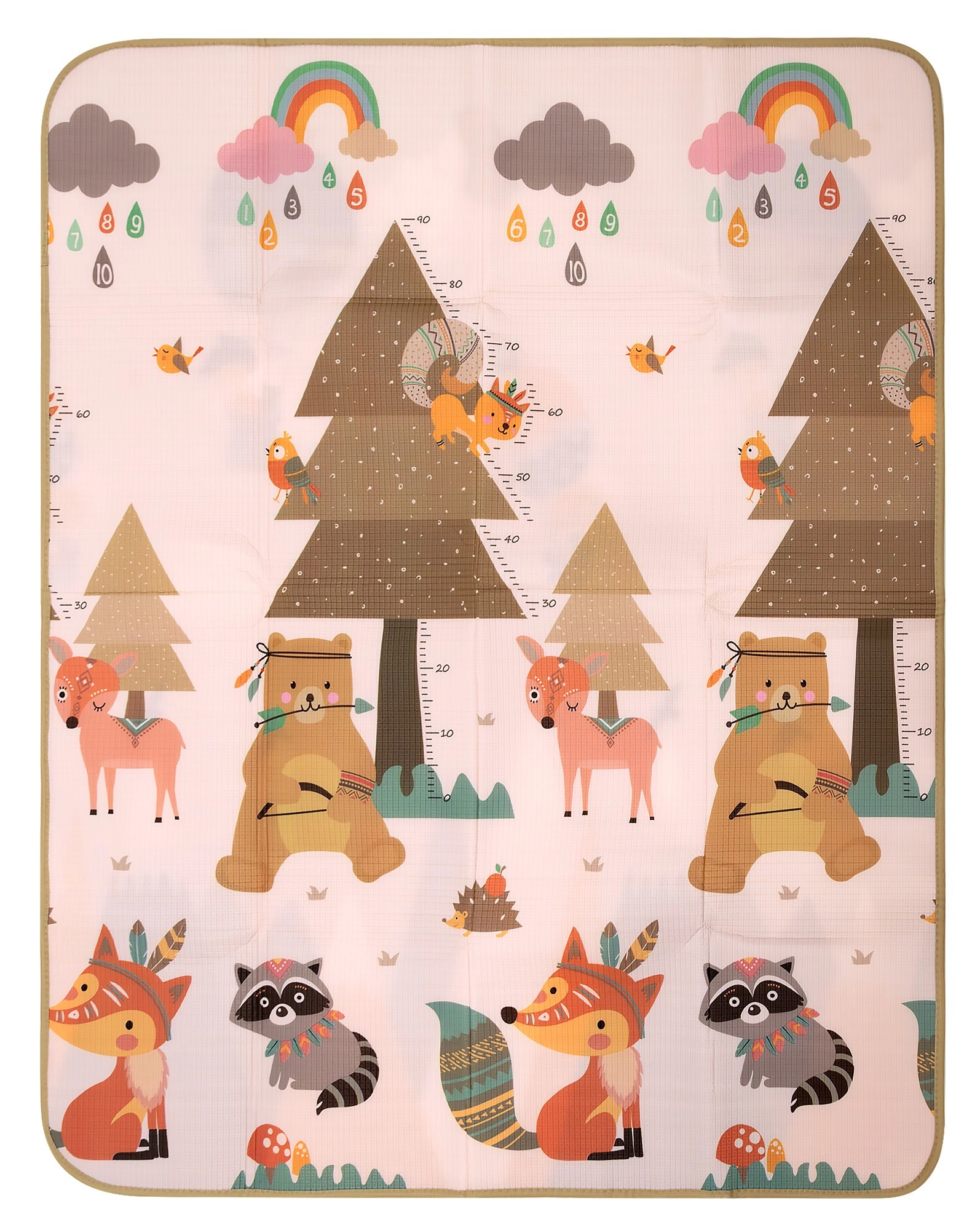 - Kahepoolne 2-ühes disain – loomakesed, mäed, õhupallid ja kasvumeeter