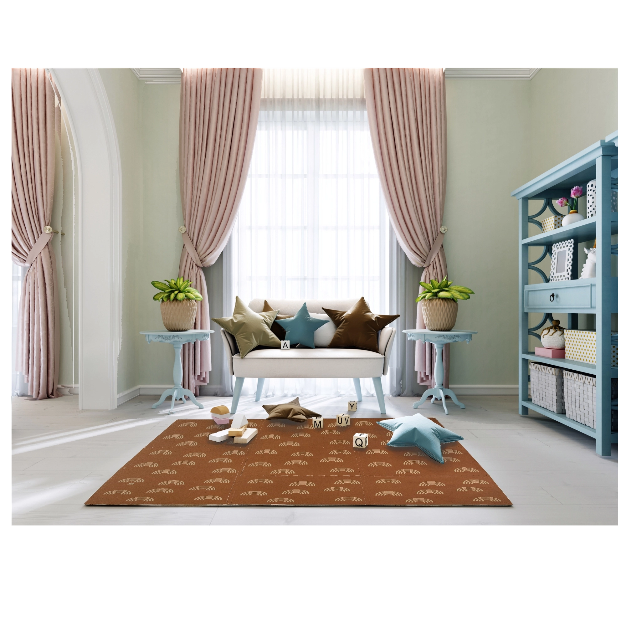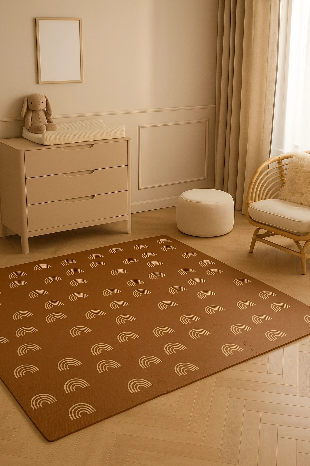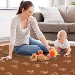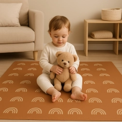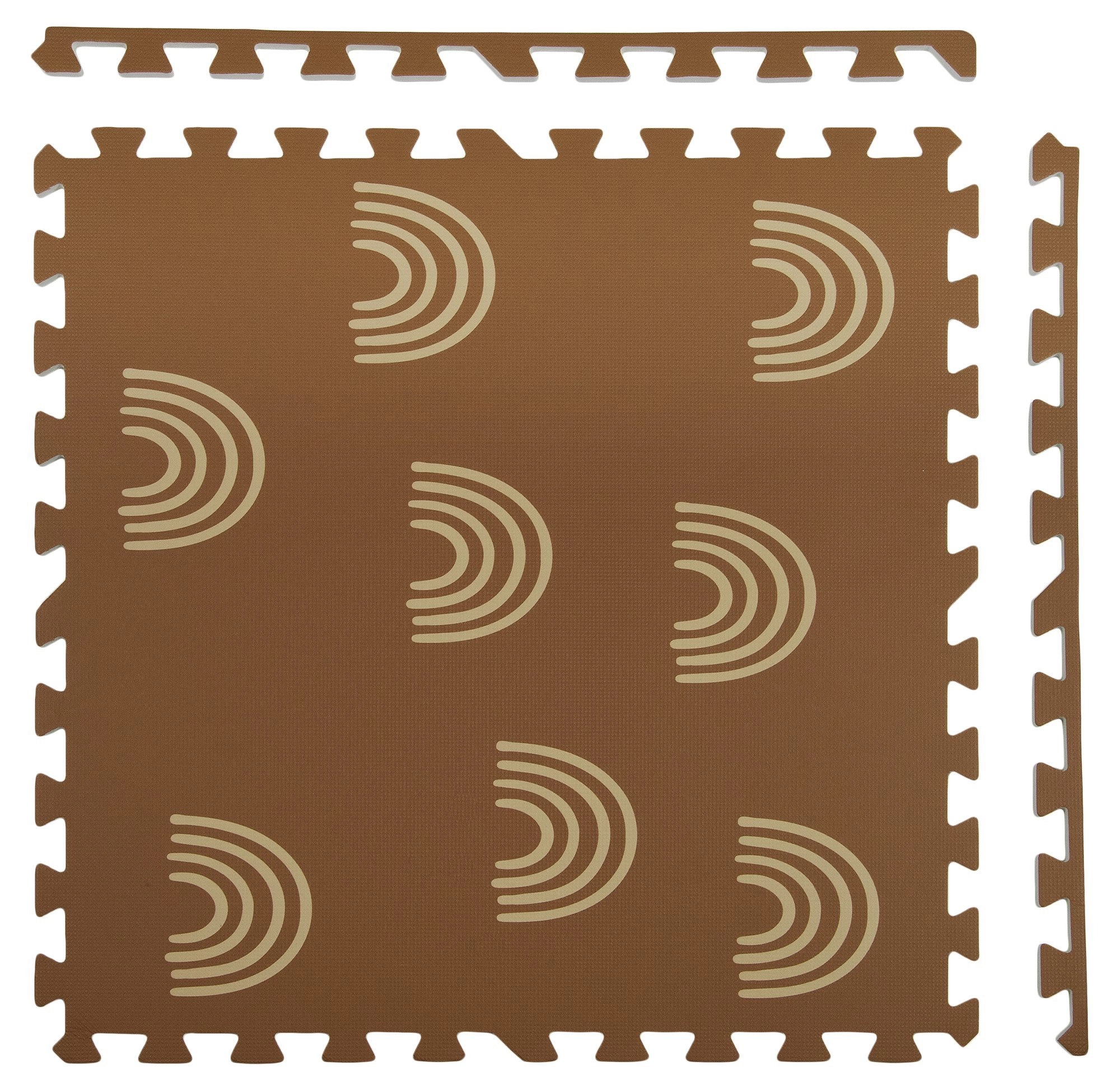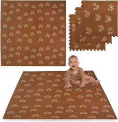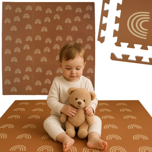 HUMBI vahumatt mahedate vikerkaarte motiiviga neutraalses pruunis sobib iga interjööriga ning kaitseb nii last kui ka põrandat. Tänu 1 cm paksusele summutab suurepäraselt lööke ja isoleerib külma eest, sobides parketile, plaadile ja laminaadile. Üksikud puslelukkudega tükid ühenduvad hõlpsasti suuremaks pinnaks või kohanduvad kitsamatesse kohtadesse.