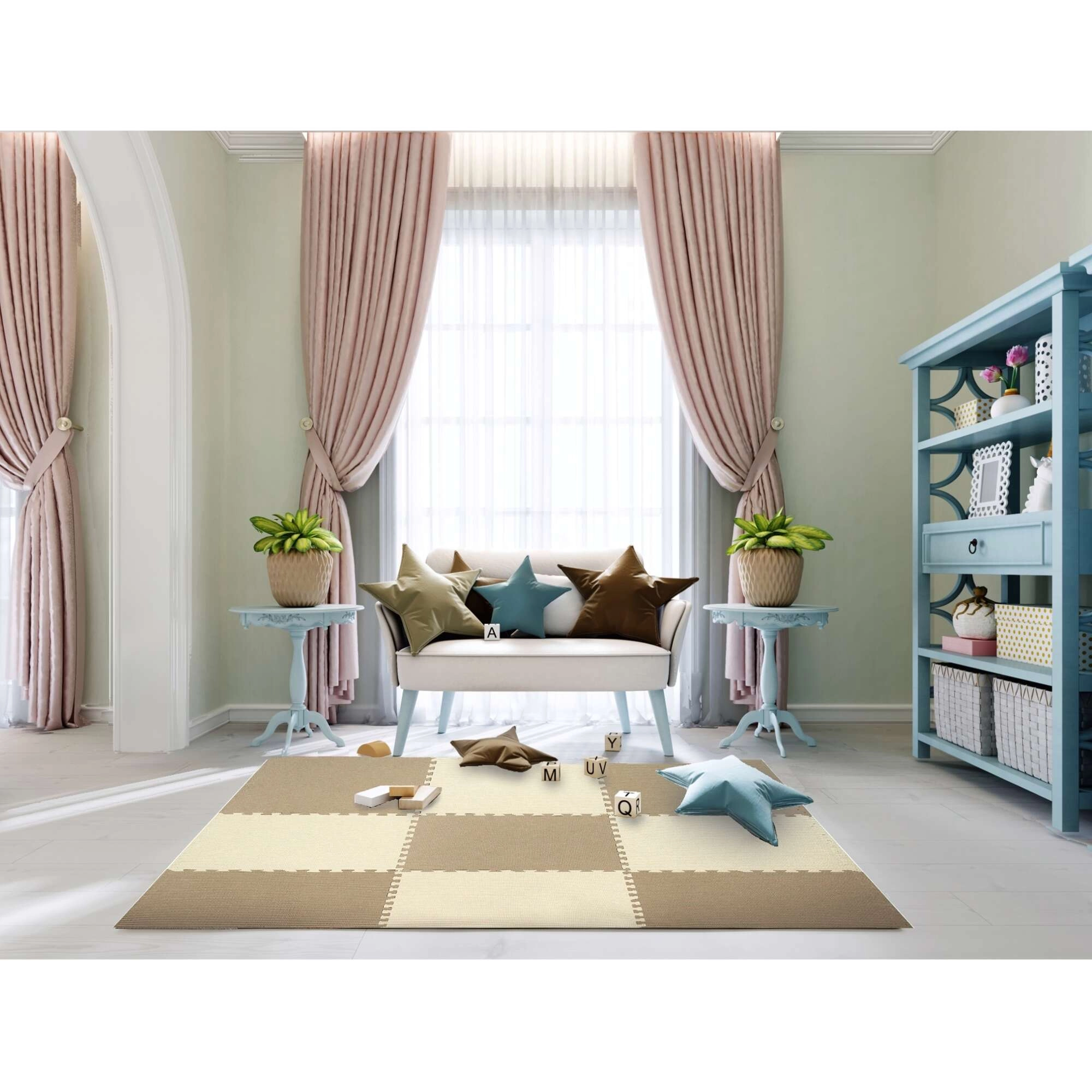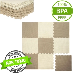 Praktiline laste vahtmatt HUMBI mõõduga 180 × 180 cm elastsest EVA-vahust loob imikule ja suurematele lastele pehme, turvalise ja libisemiskindla mänguala. 9 suurt 60 × 60 cm plaati koos 18 servaliistuga käivad kokku nagu pusle, matt on veekindel, kergesti puhastatav, isoleerib külma põrandast ja summutab lööke. Neutraalsed kreemjas-beežid toonid sobivad igasse interjööri ning komplekti saab laiendada lisakomplektiga.
