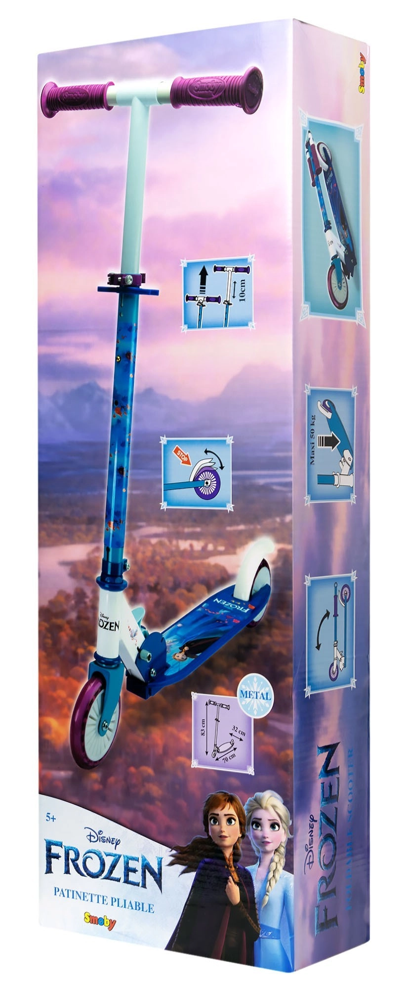 See kahe rattaga tõukeratas, millel on armastatud tegelased sarjast DISNEY FROZEN, rõõmustab väikseid sõitjaid atraktiivse disaini ja turvalise ehitusega. Alumiiniumraami tänu on ratas väga kerge ja hõlpsasti kaasaskantav, samas piisavalt tugev igapäevaseks sõitmiseks. Kokkupandav mehhanism lihtsustab hoiustamist ja transporti.