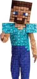 See litsentseeritud Minecraft Steve kostüüm muudab sinu lapse ikoonilise kuubikumängu üheks lemmiktegelaseks. Kostüüm koosneb ühes tükis kombinesoonist türkiissinise „rüü“ ja siniste pükste trükiga ning ruudulisest peamaskist, mis loob 8-bitise kangelase efekti. Suurepärane koolikarnevaliks, lastepidudeks ja teemafotodeks.
