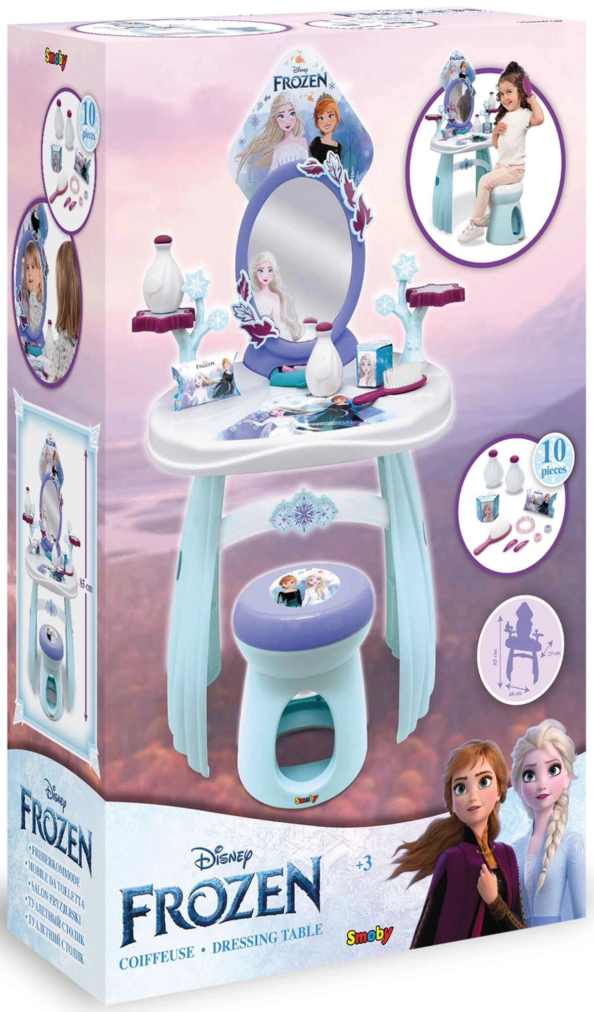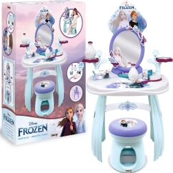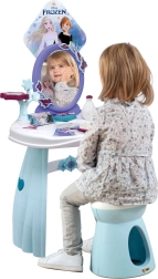 FROZENi maailmast inspireeritud tualettlaud rõõmustab kõiki väikseid printsesse. Stabiilne plastkonstruktsioon, siledad servad ja ohutu peegel toetavad turvalist mängu, samal ajal kui praktiline taburet võimaldab mugavalt istuda kammimise ja kaunistamise ajal. Lauaplaadil on hoiualad ja hoidikud tarvikutele, et kõik vajalik oleks käeulatuses.